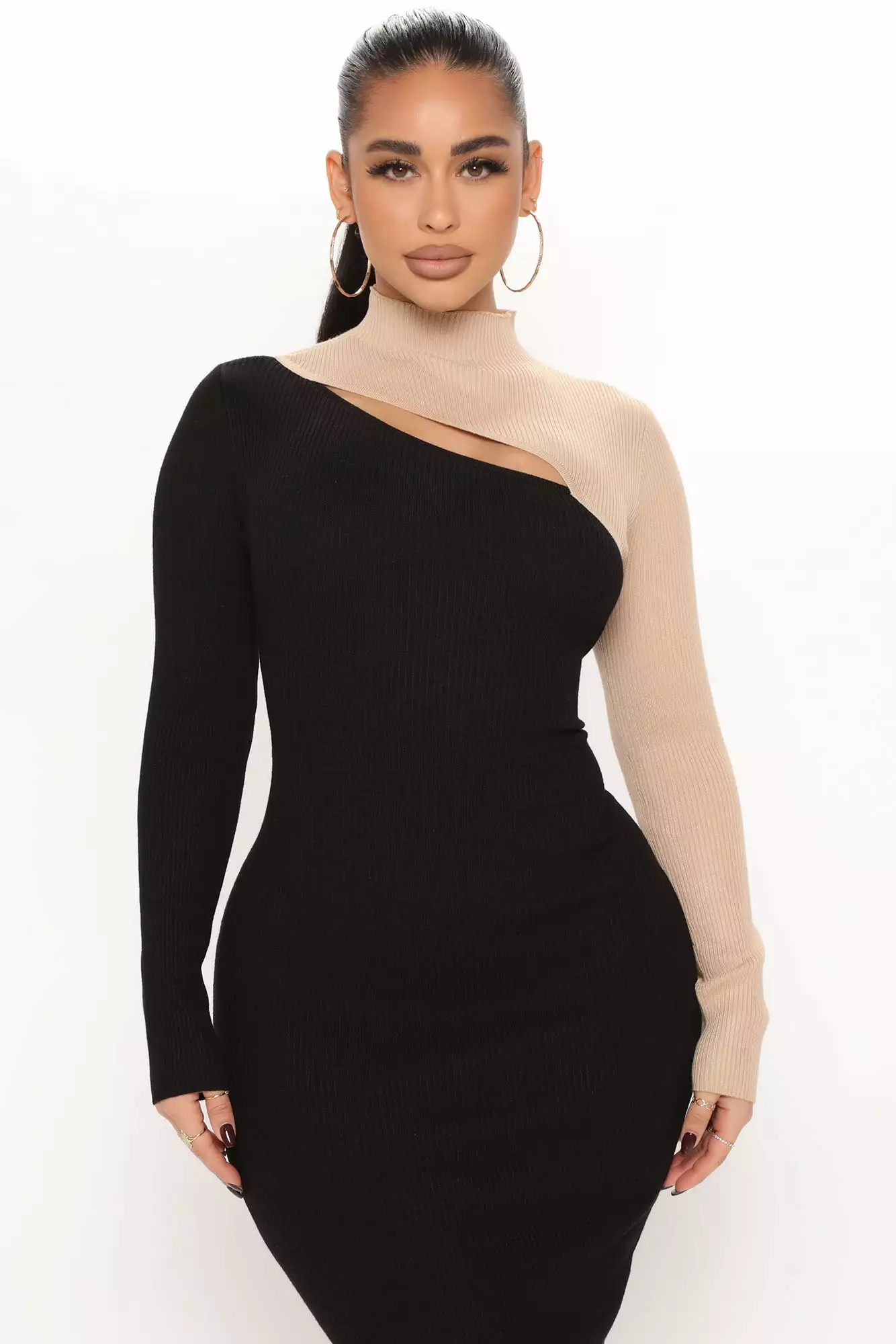 Fashion Nova Fall Fixation Sweater Midi Dress – Black/combo