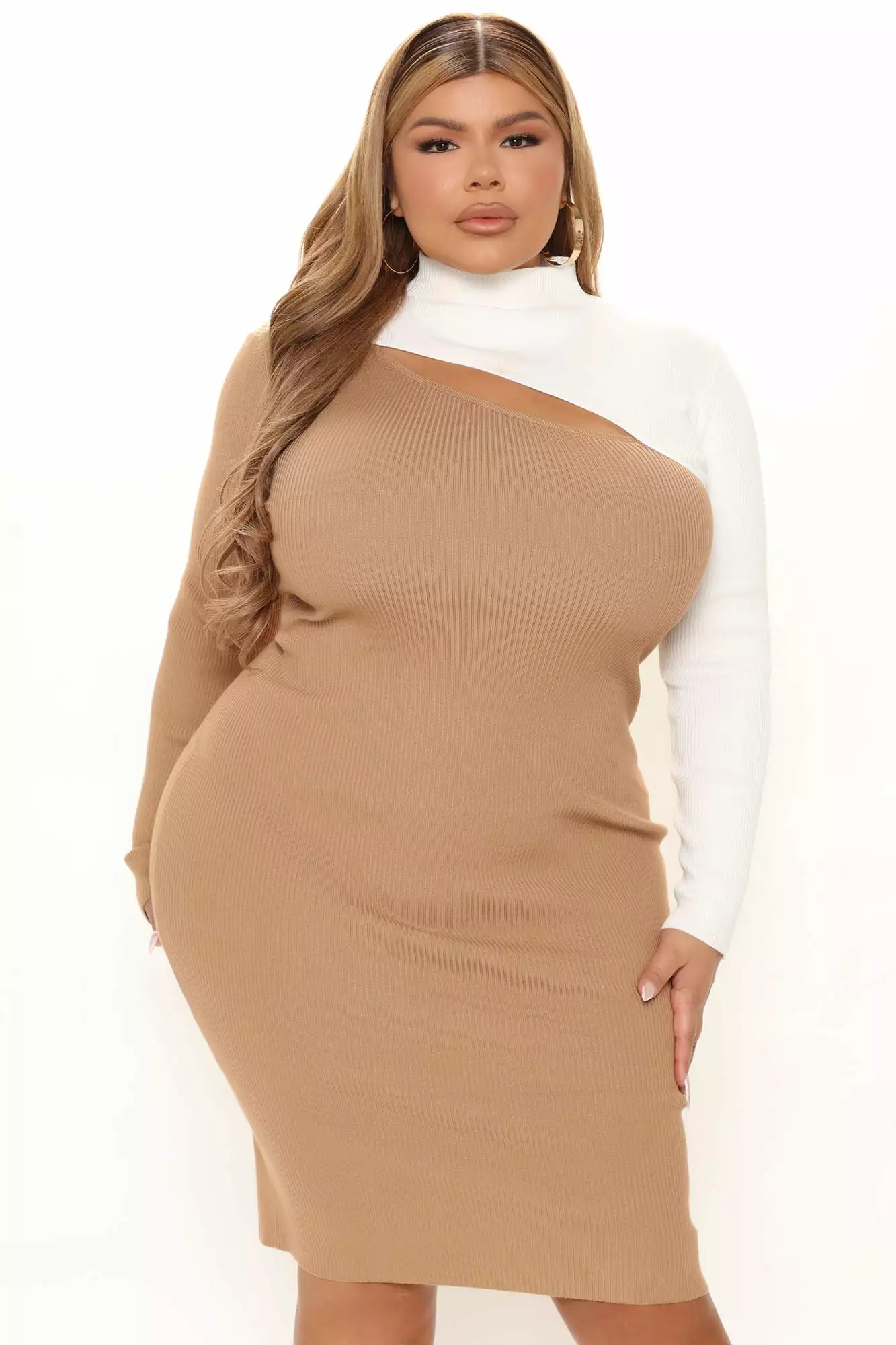 Fashion Nova Fall Fixation Sweater Midi Dress – Camel/combo