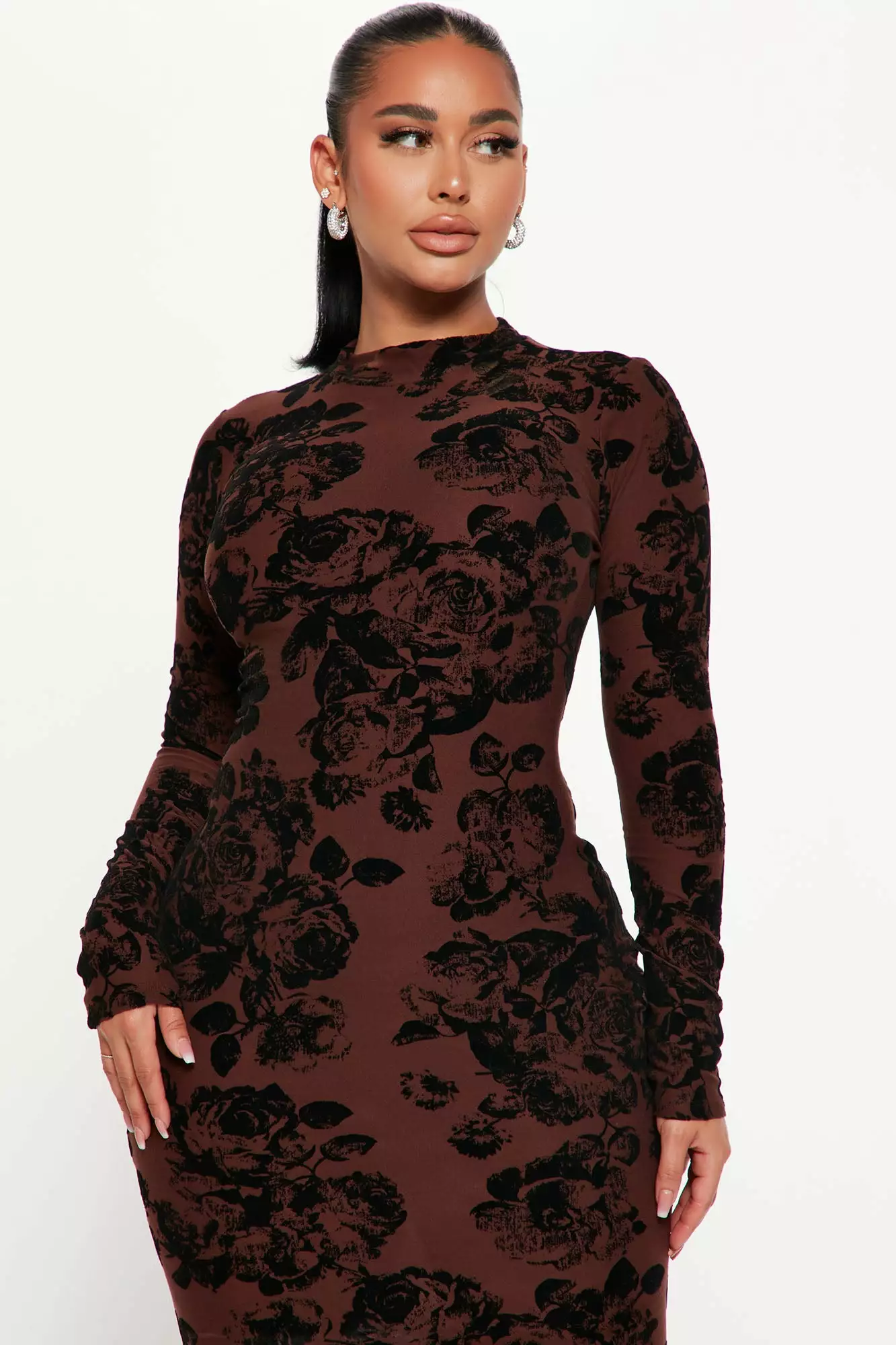 Fashion Nova Fall Forward Midi Dress – Brown/combo