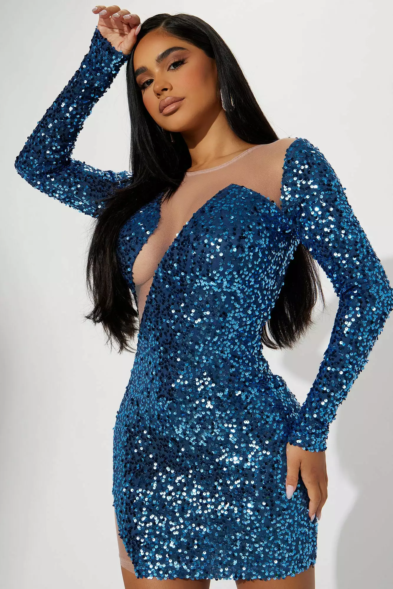 Fashion Nova Feel Alive Sequin Mini Dress – Blue