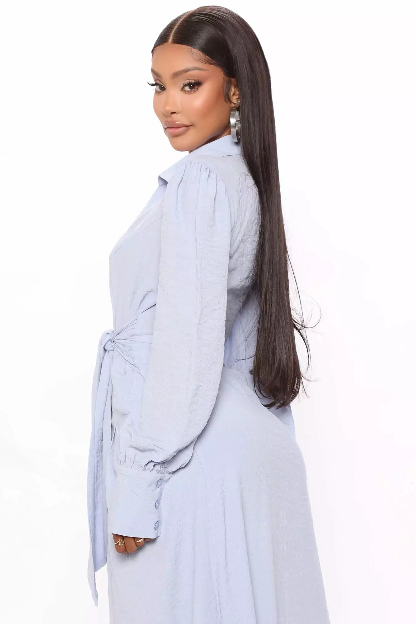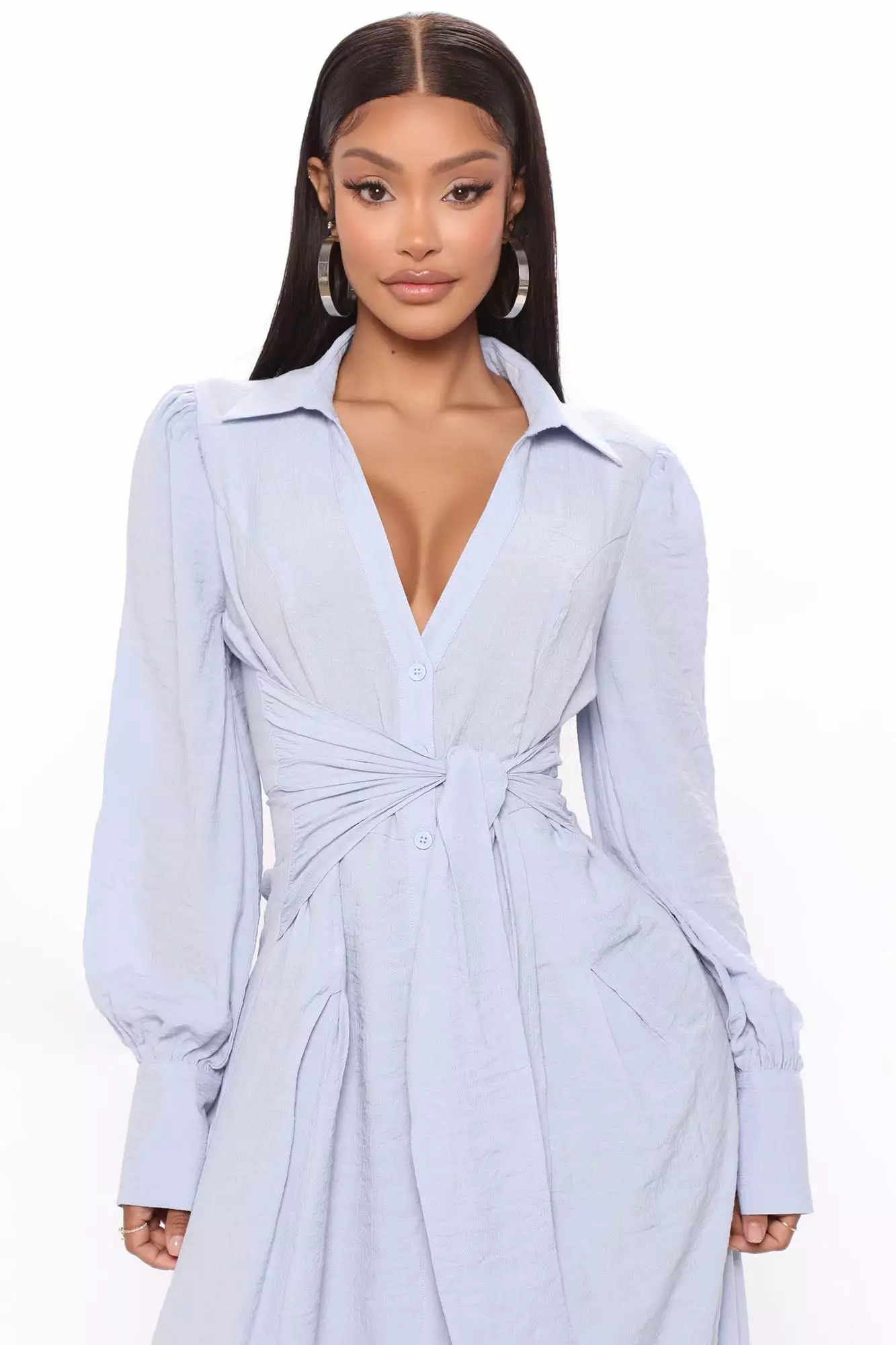Fashion Nova Feelin’ Thoughtful Shirt Dress – Blue