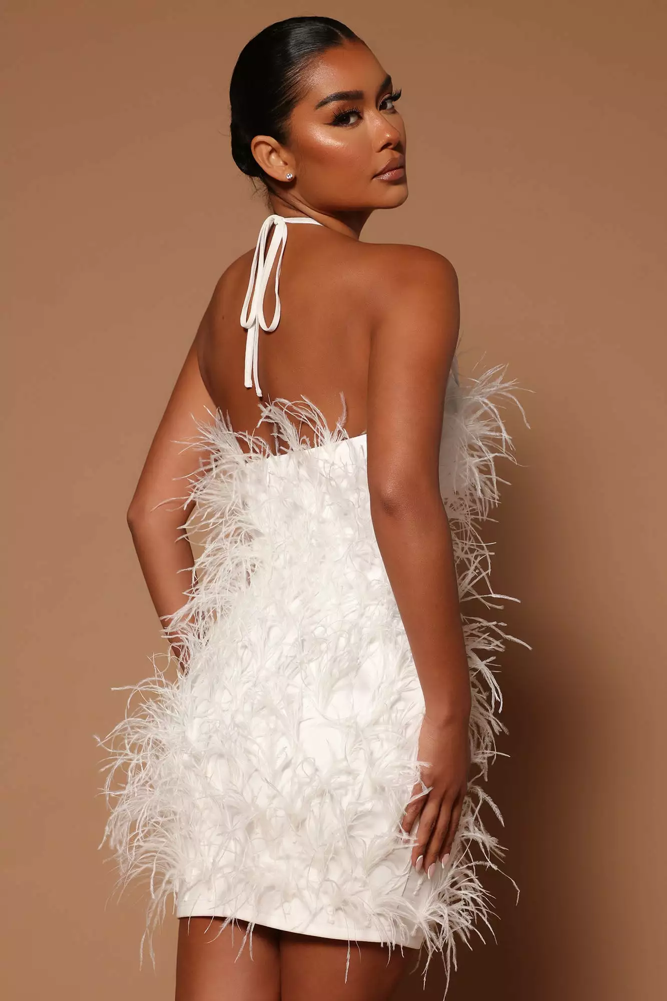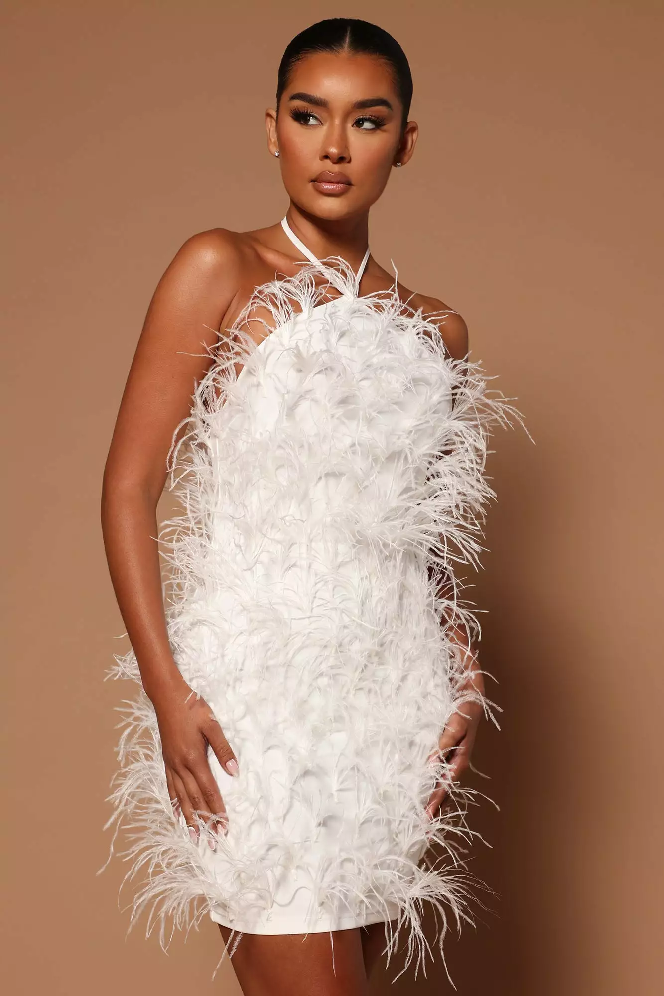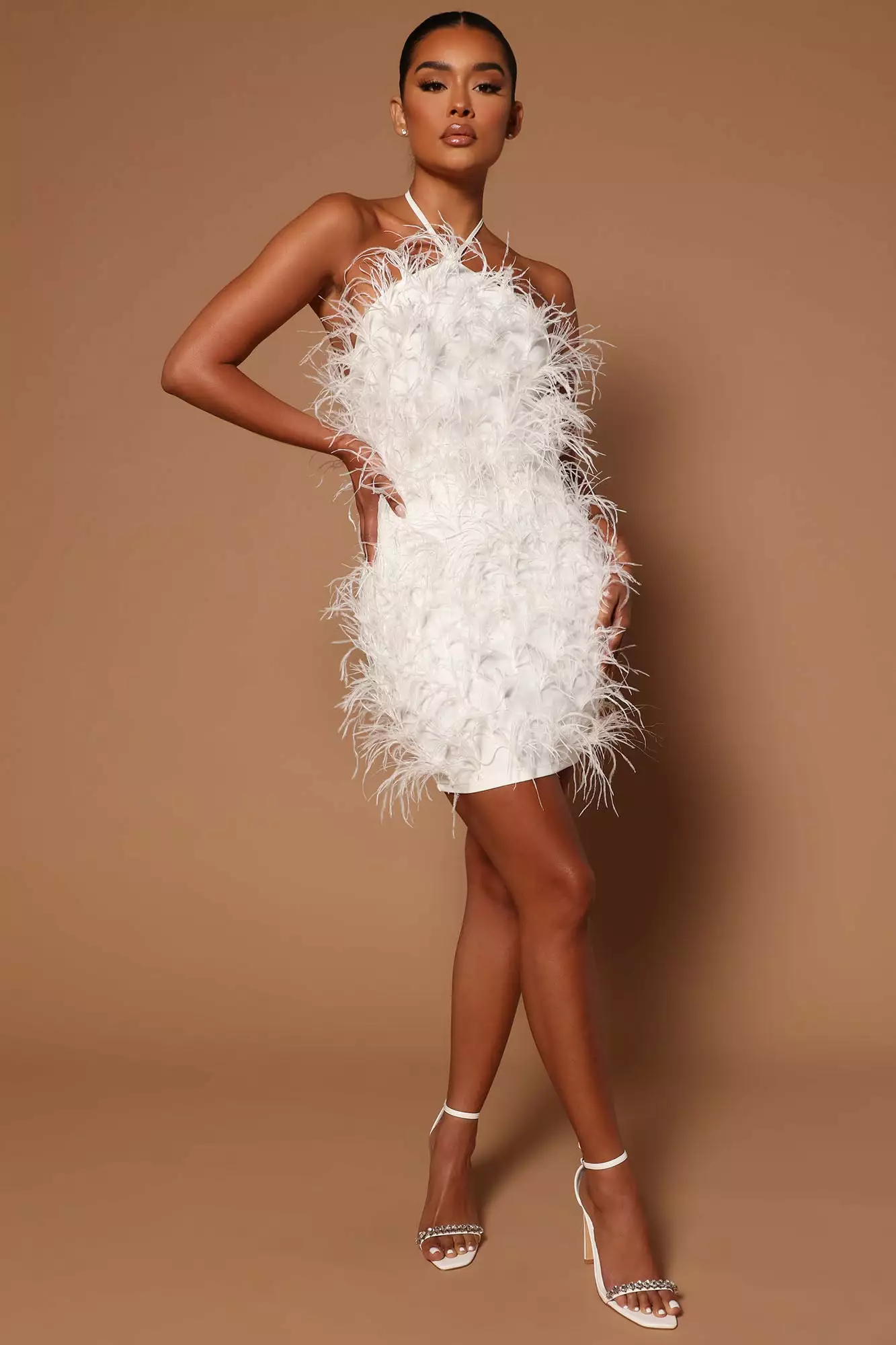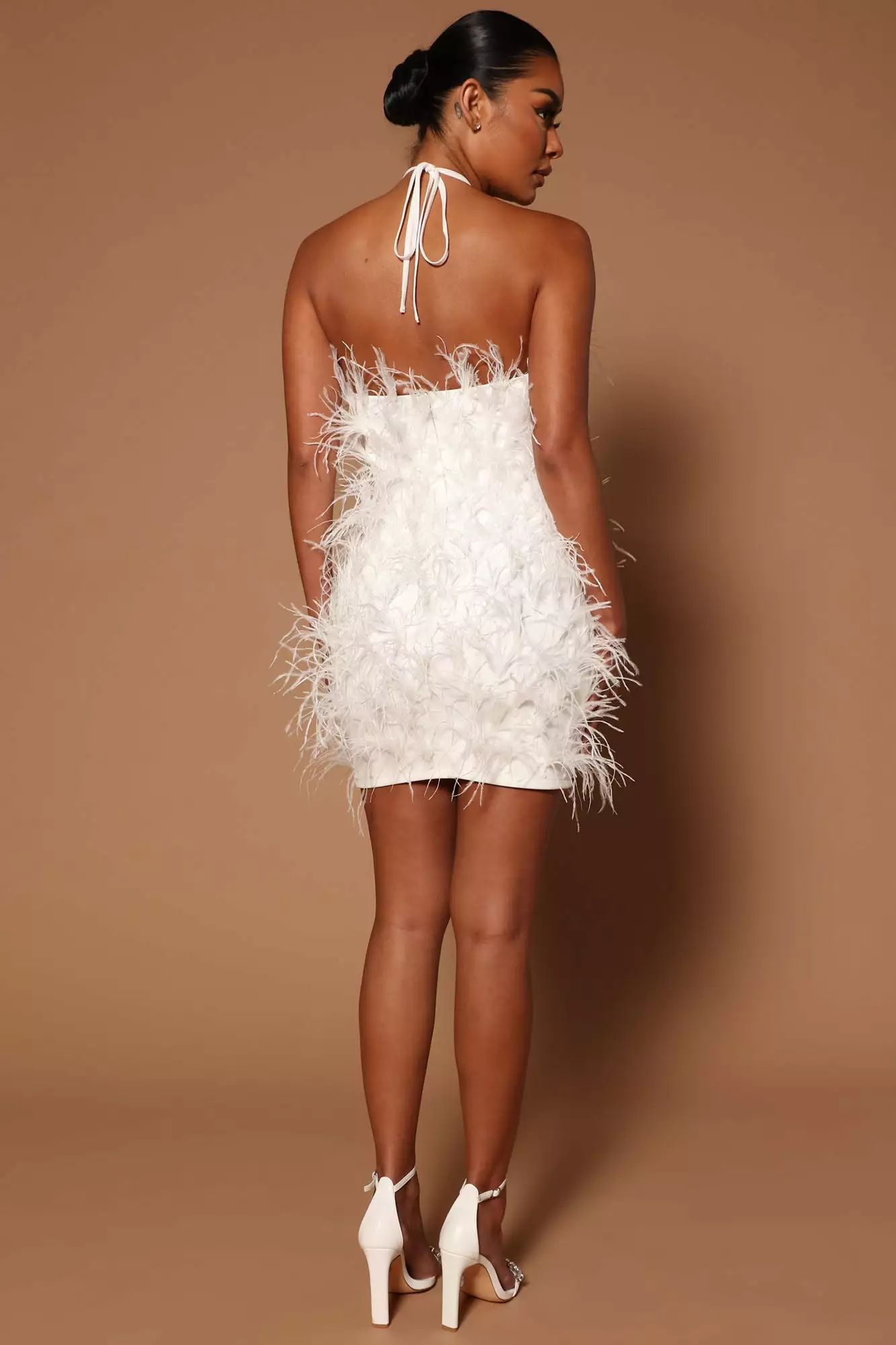 Fashion Nova Feeling Expensive Feather Mini Dress – White