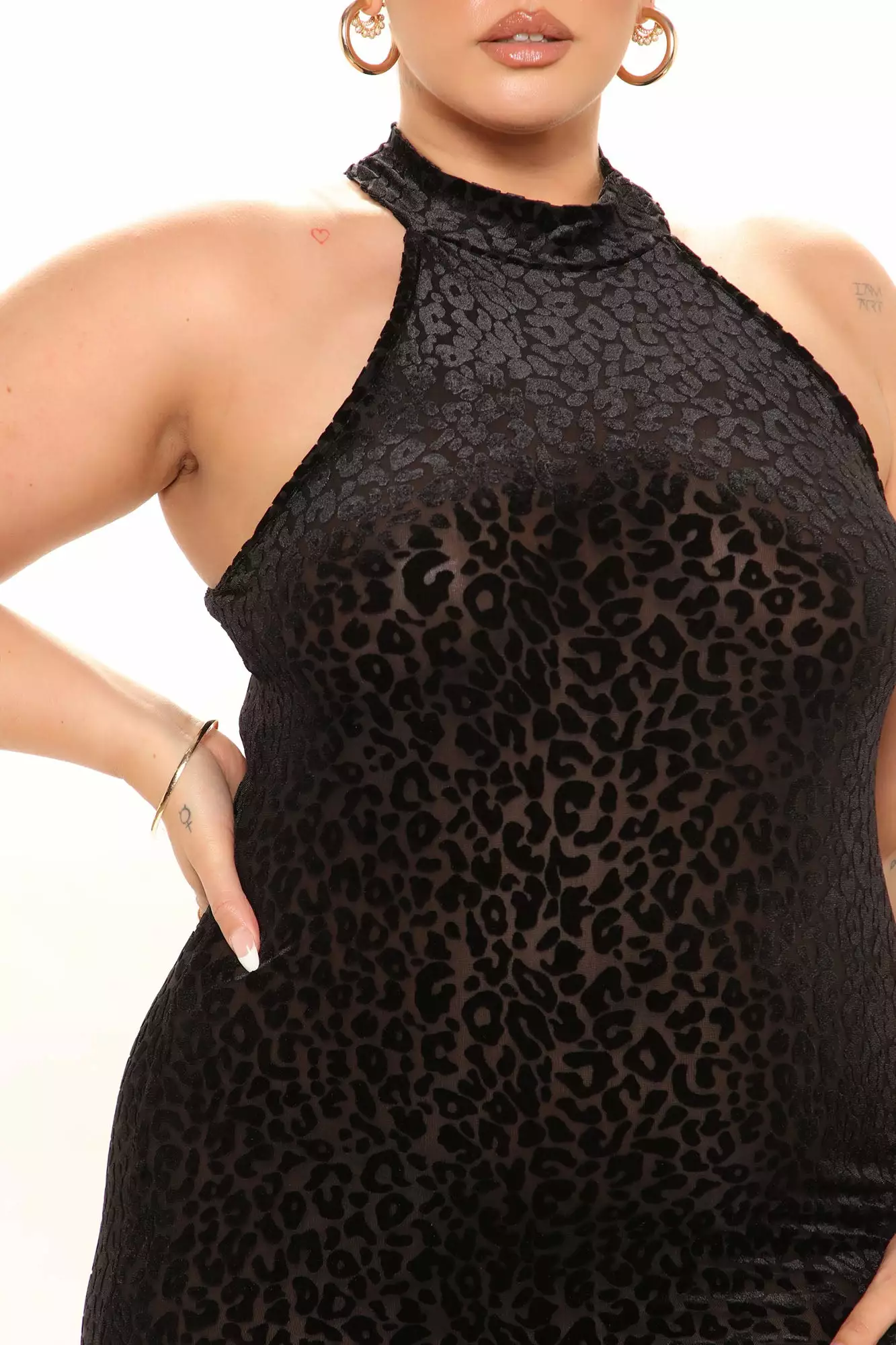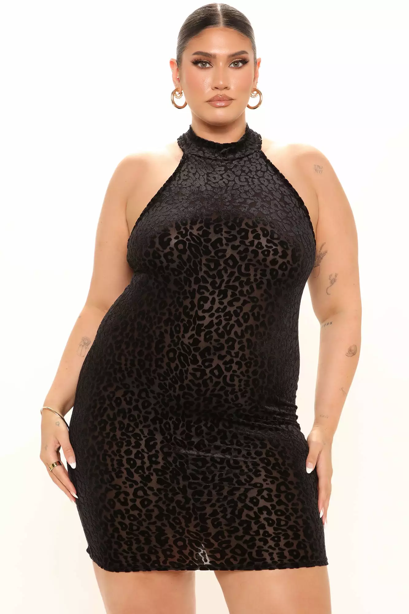Fashion Nova Feline Babe Velvet Leopard Mini Dress – Black