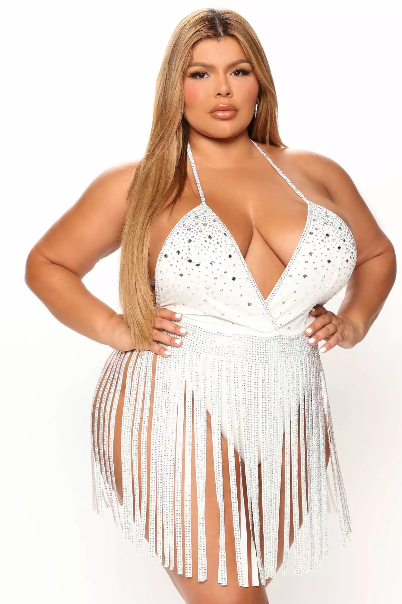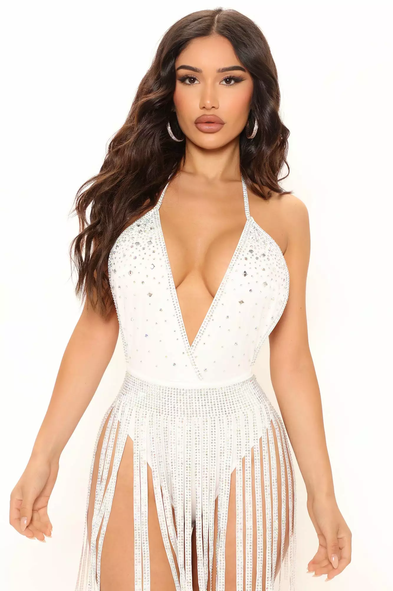 Fashion Nova Festival Love Embellished Mini Dress – White