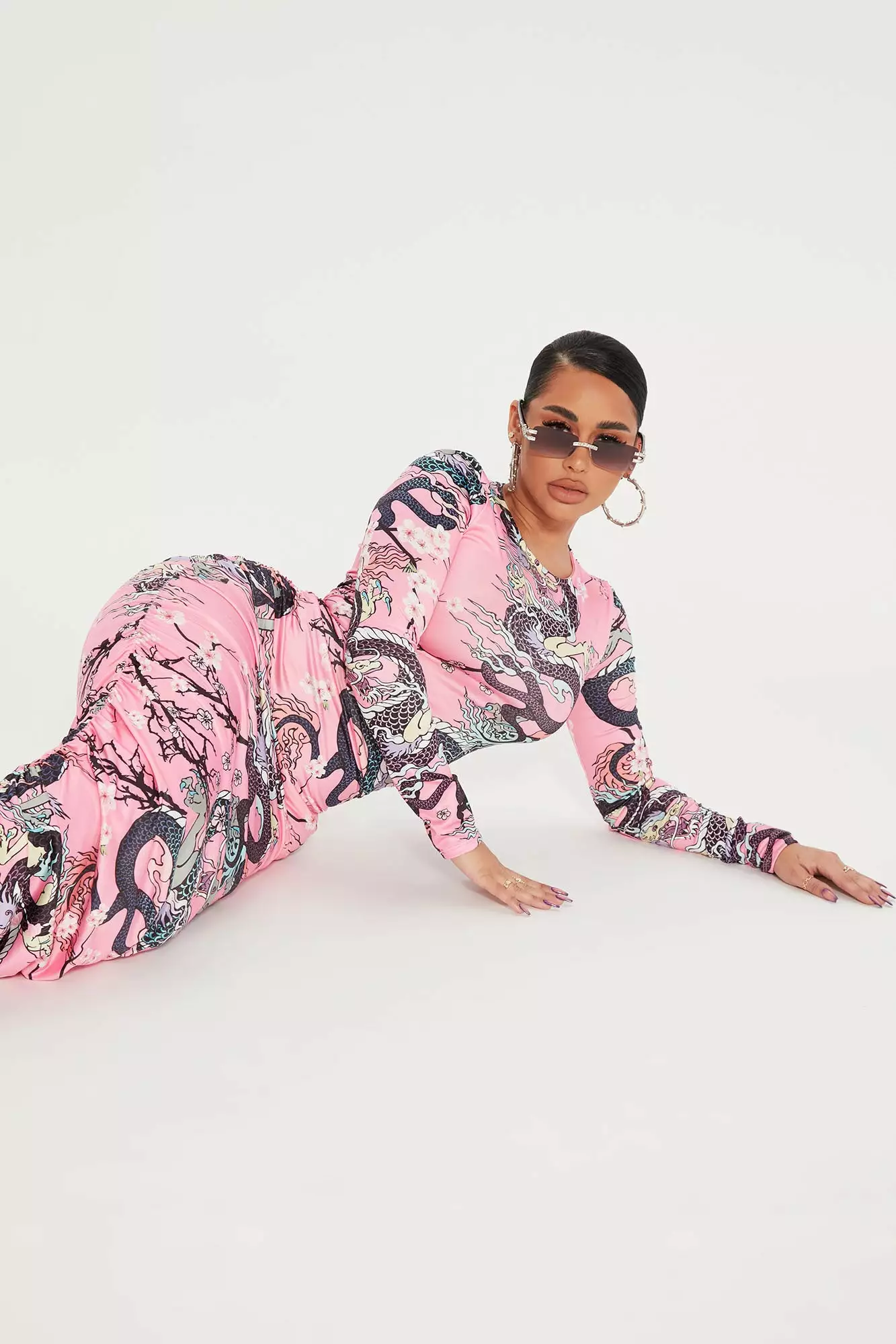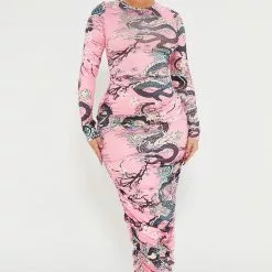 Fashion Nova Fiery Passion Gloved Maxi Dress – Pink/combo