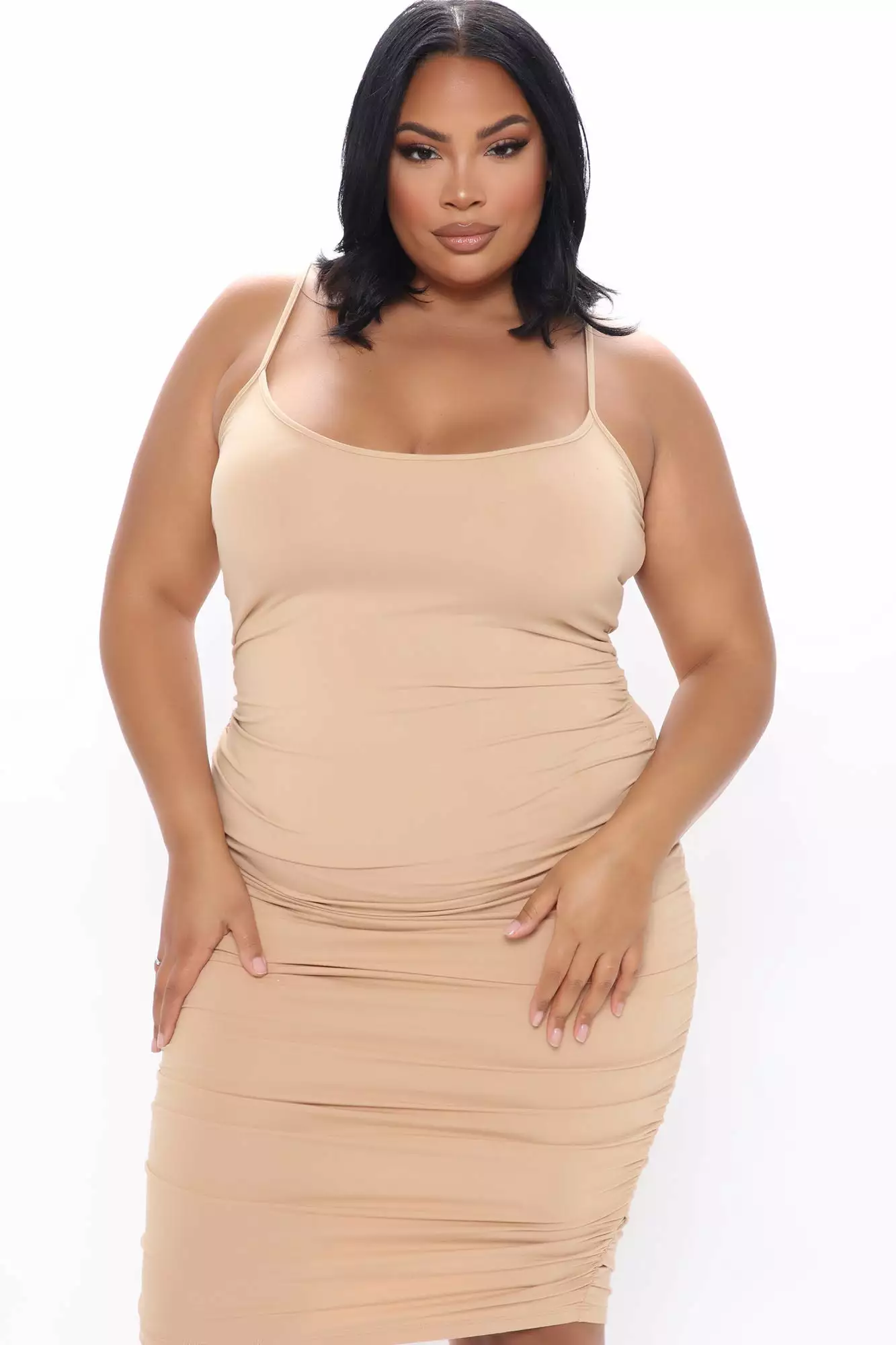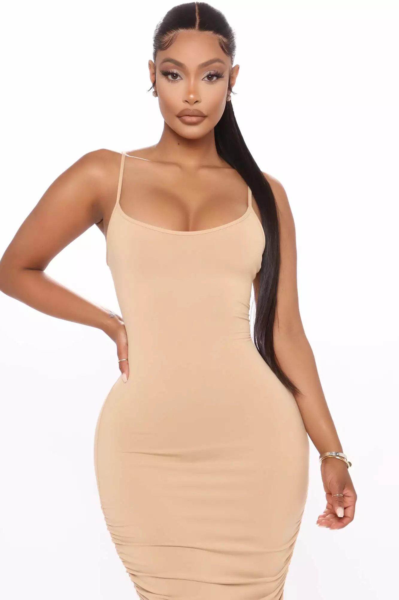 Fashion Nova Flaunting It Bodycon Midi Dress – Nude