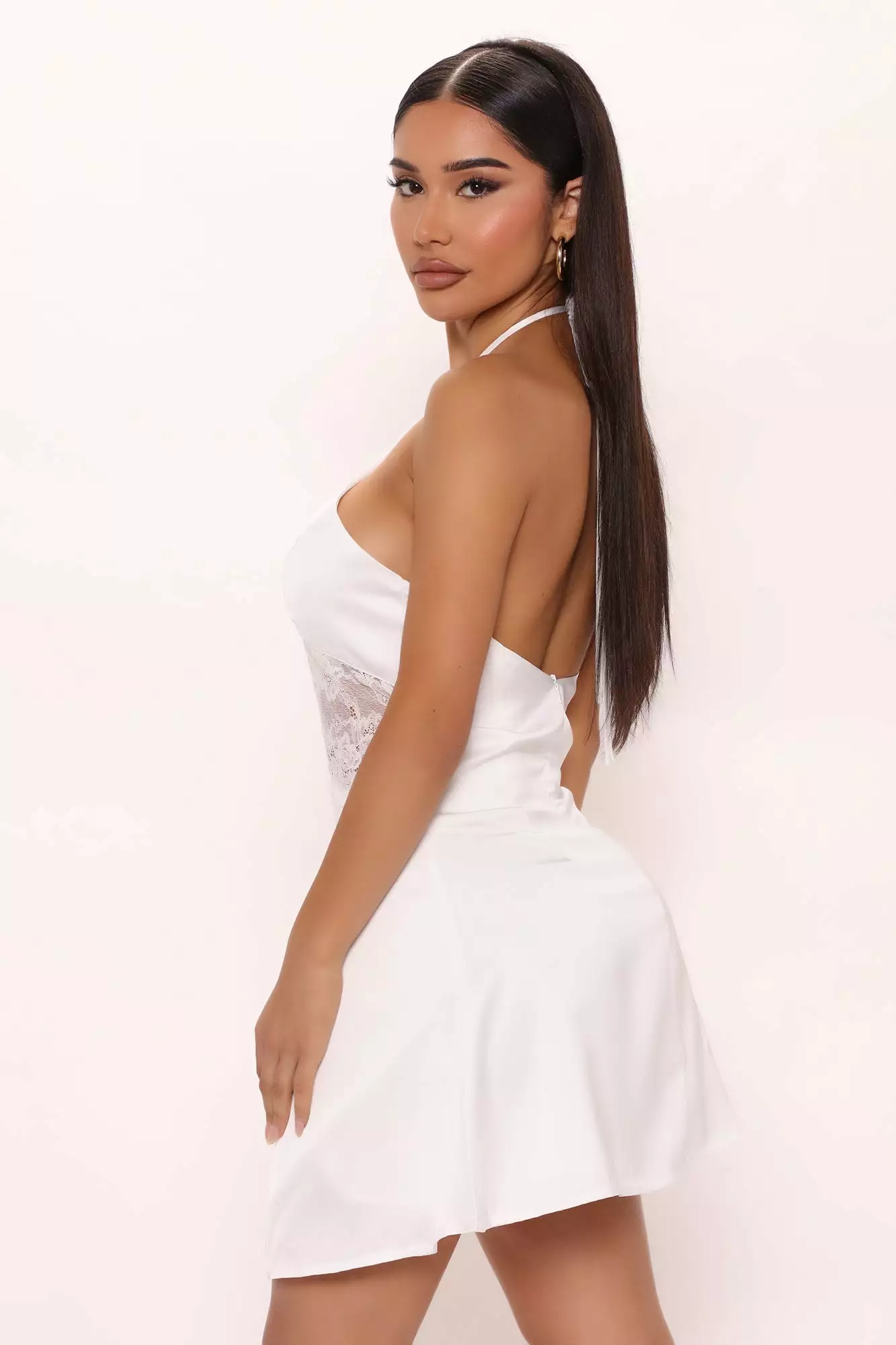 Fashion Nova Flirty And Sweet Satin Mini Dress – White