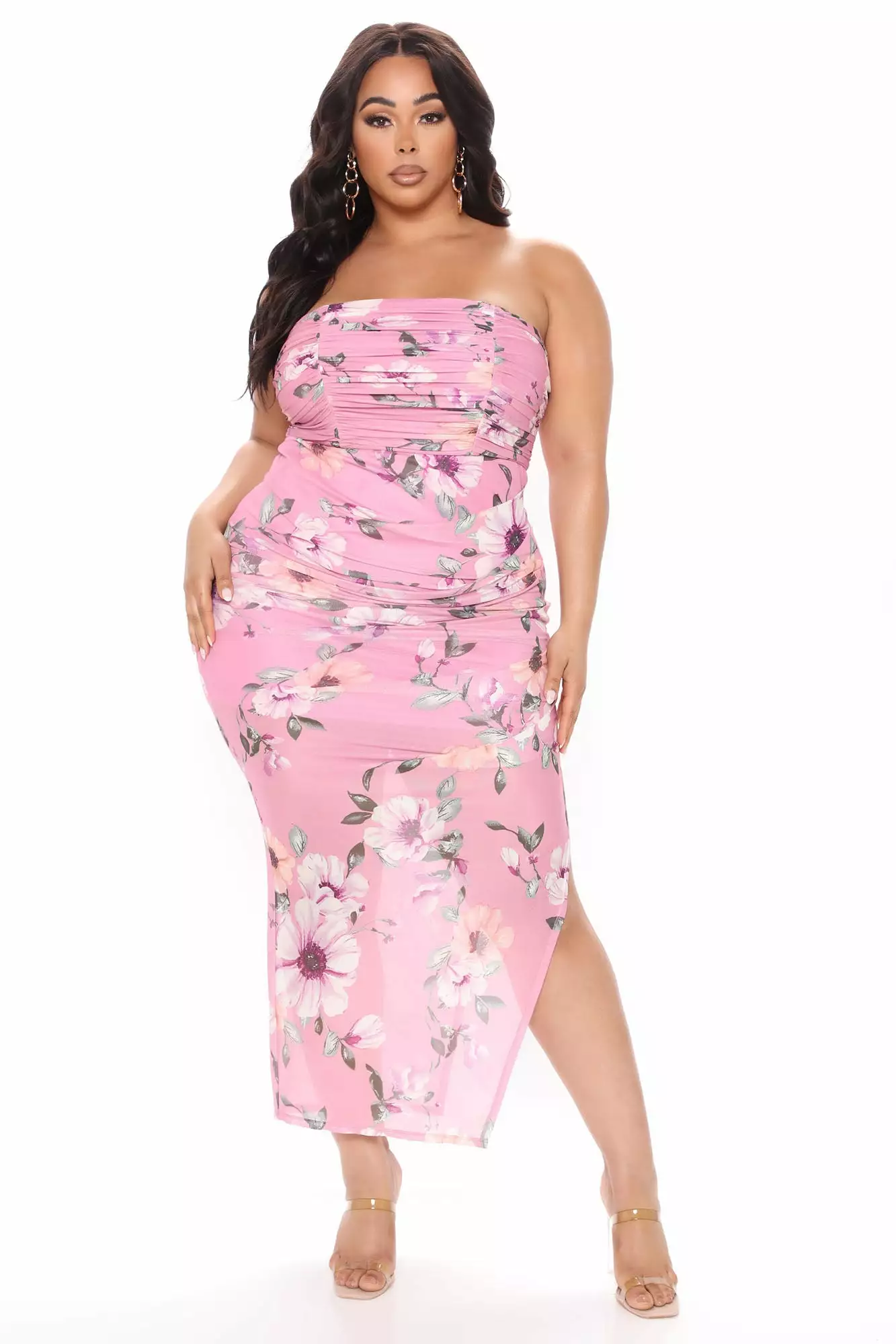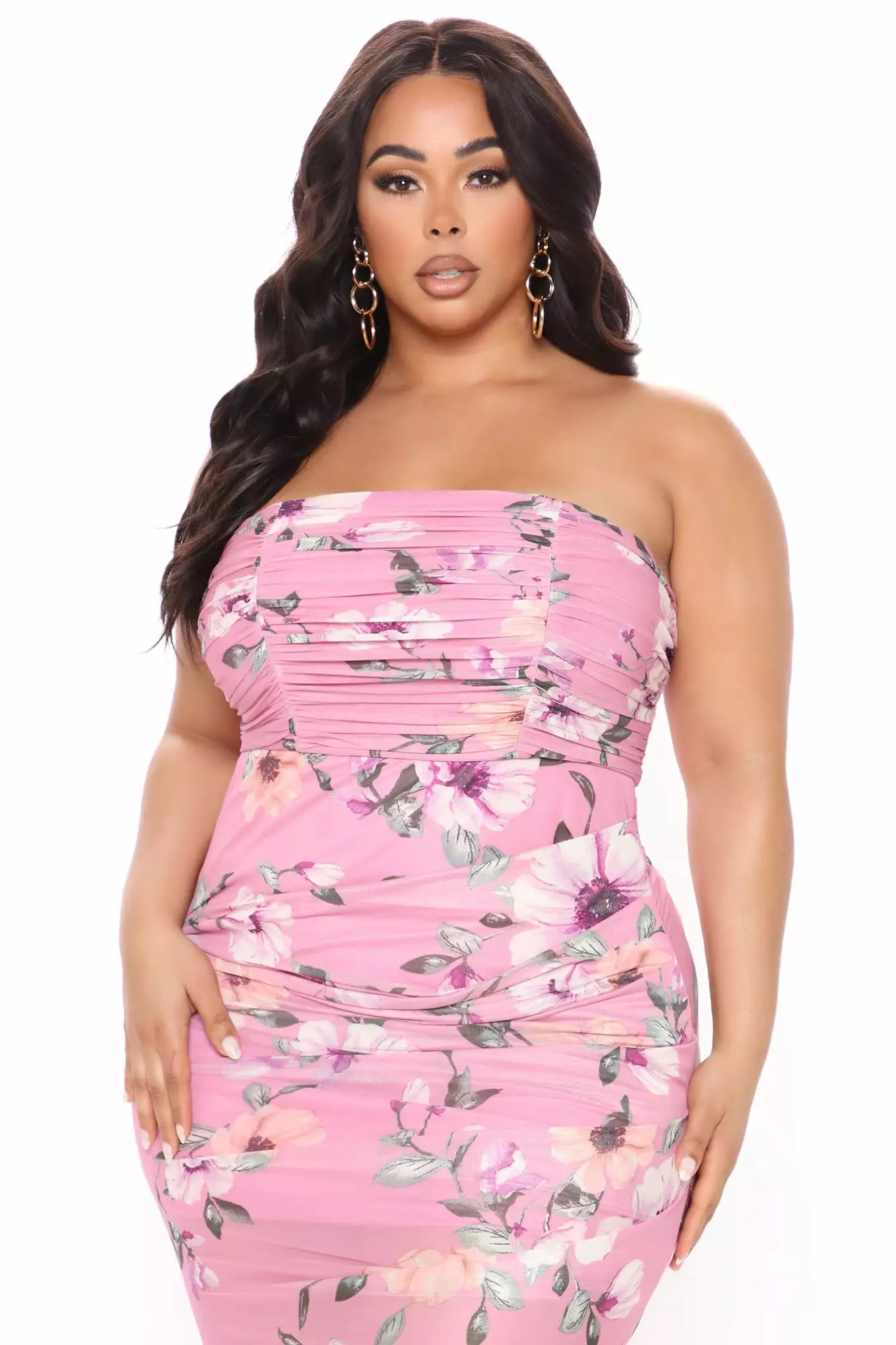 Fashion Nova Flowers From You Mesh Maxi Dress – Mauve/combo