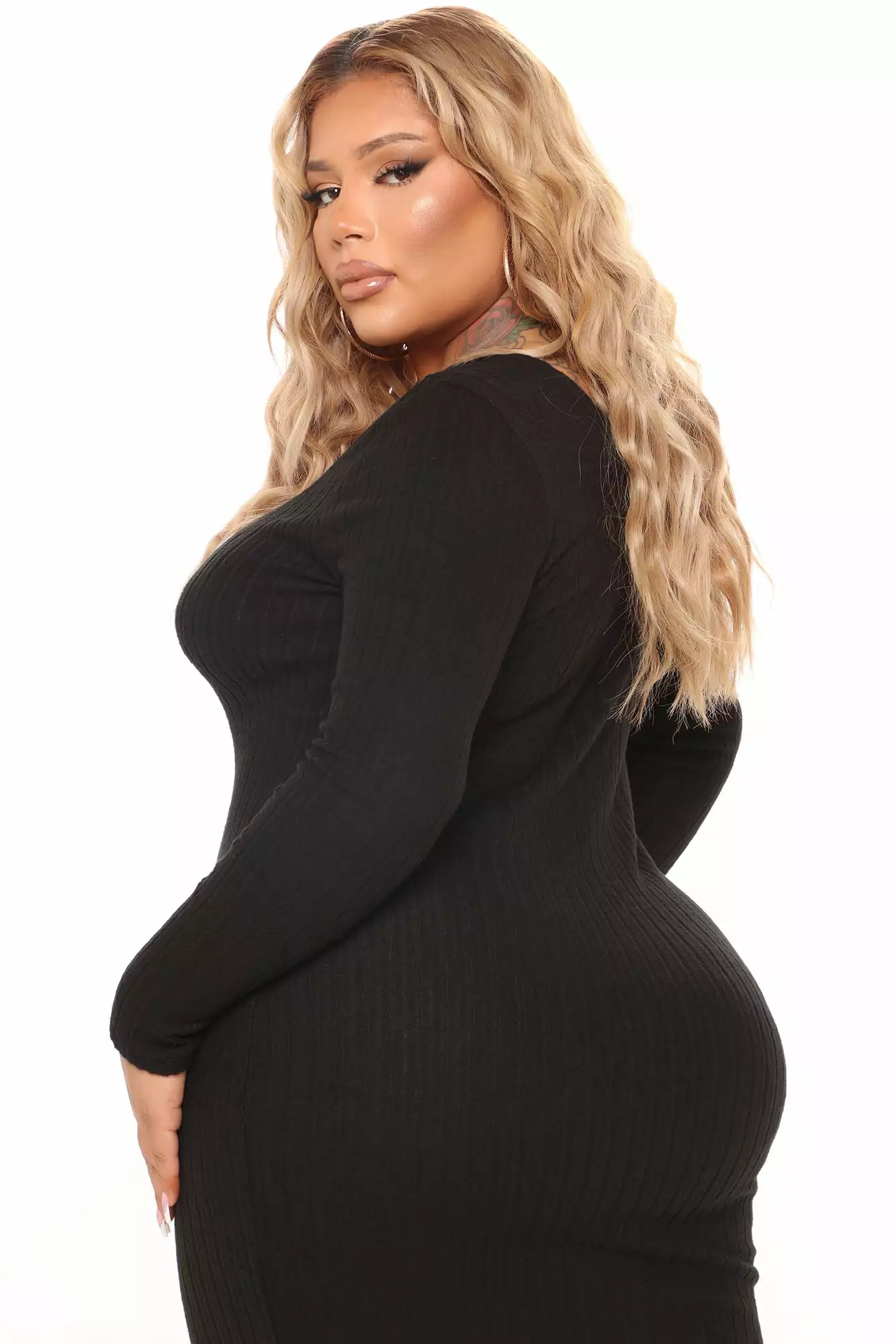 Fashion Nova For The Thrill Of It Midi Dress – Black