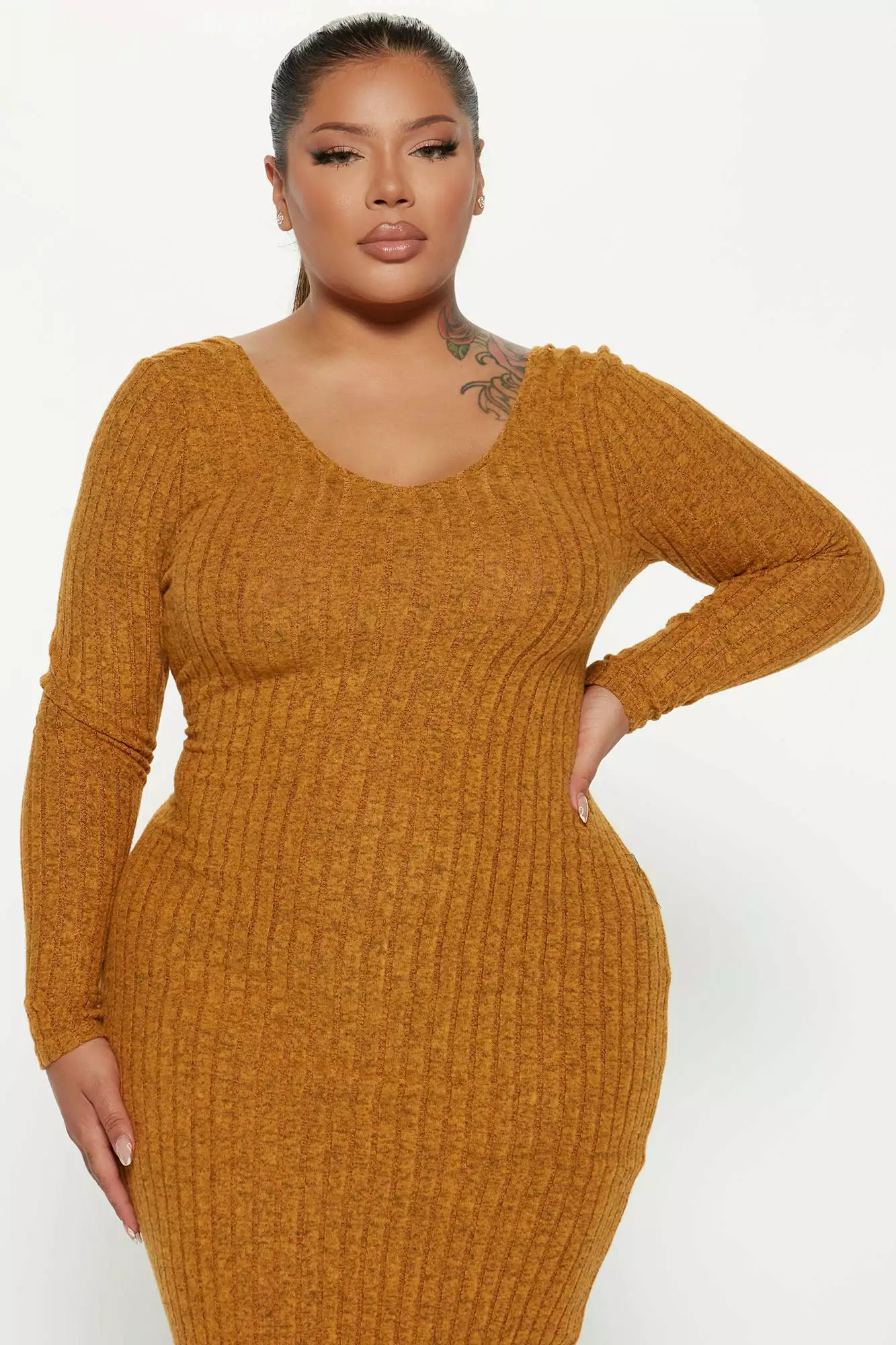 Fashion Nova For The Thrill Of It Midi Dress – Mustard