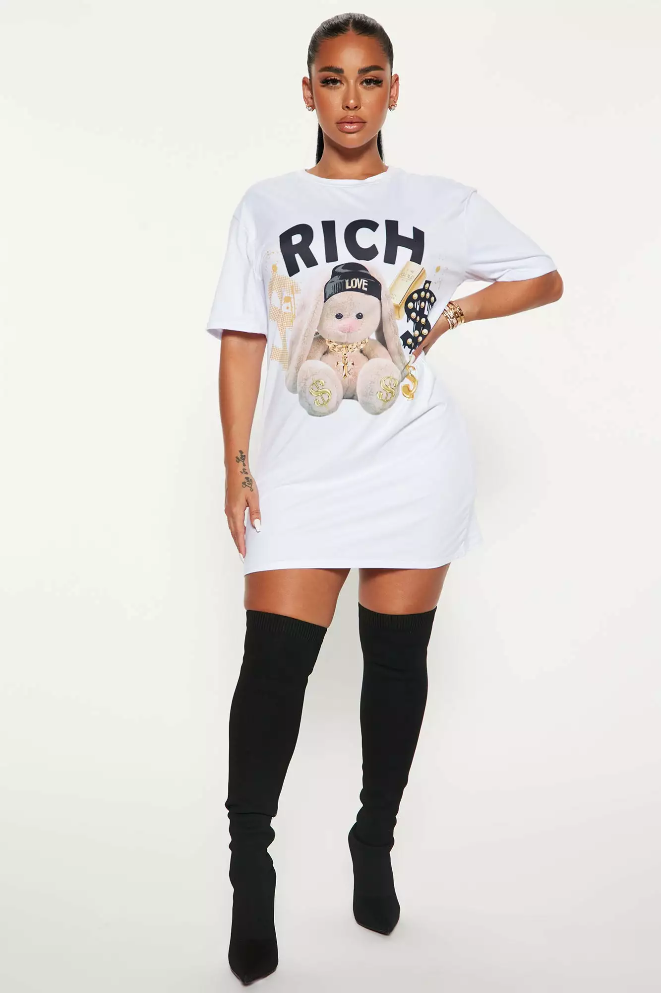 Fashion Nova Forever Rich T-Shirt Dress – White