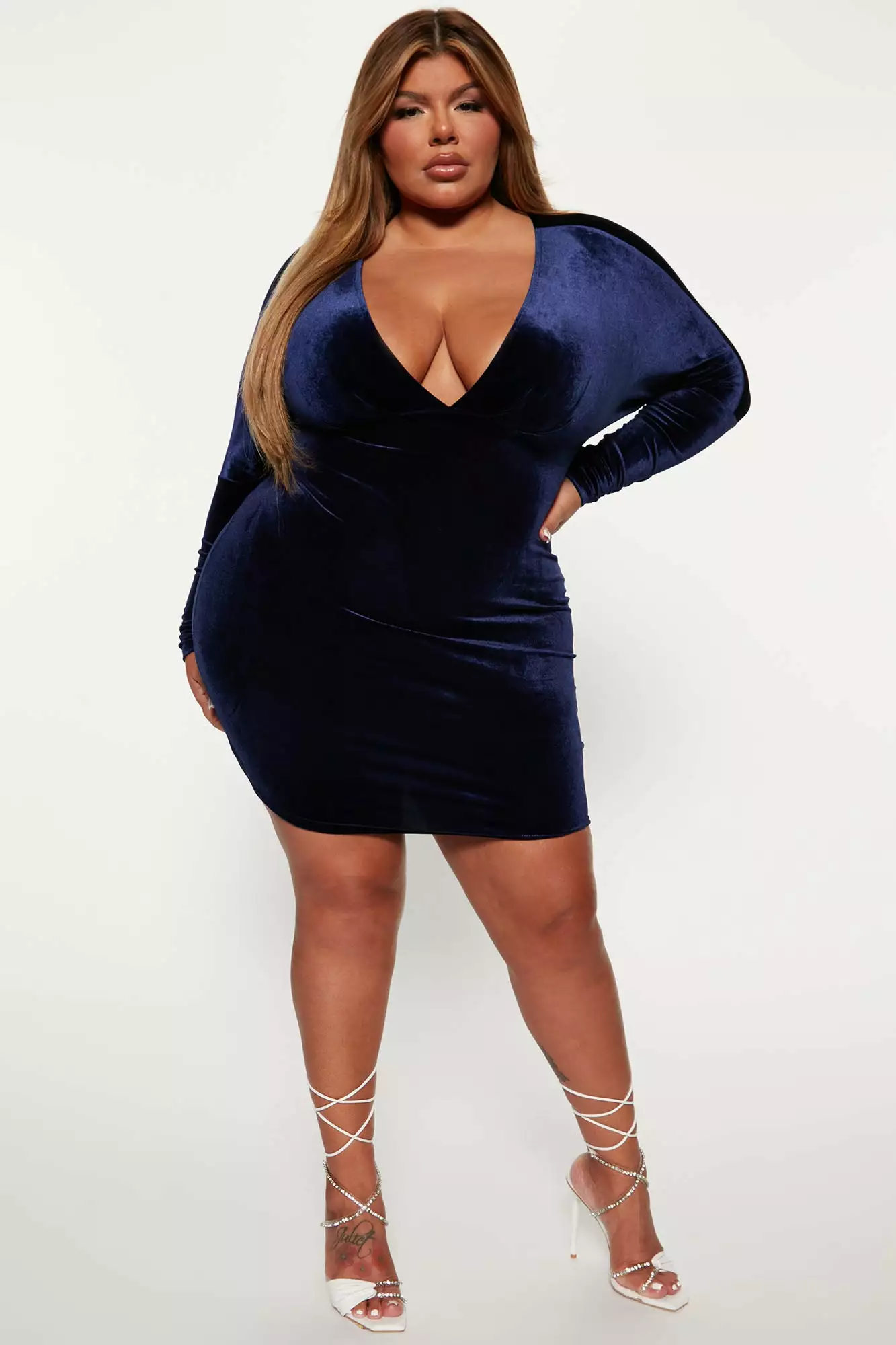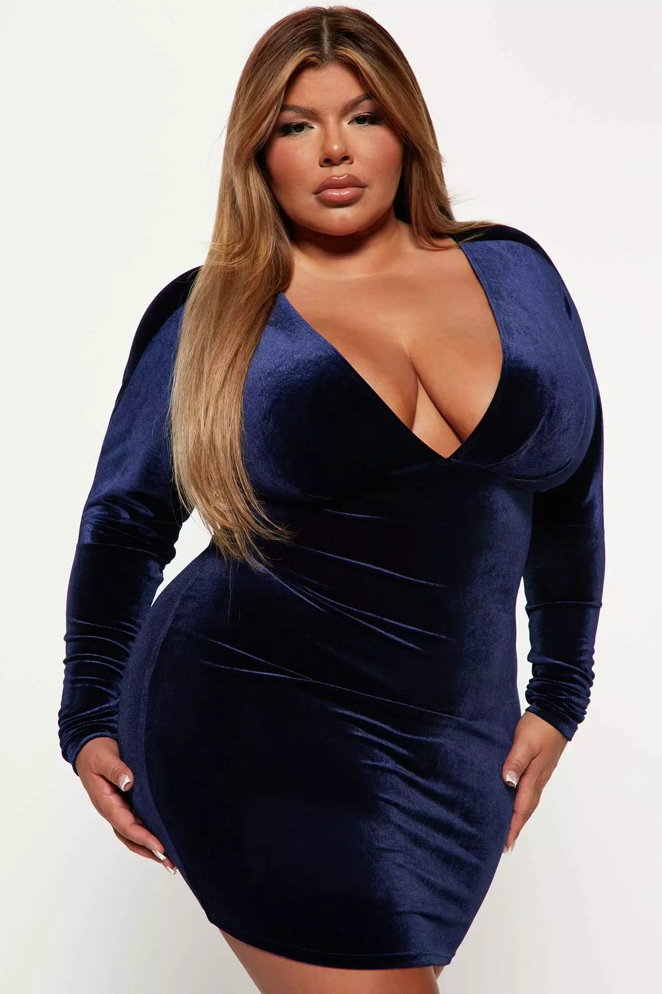 Fashion Nova Frida Velvet Mini Dress – Navy