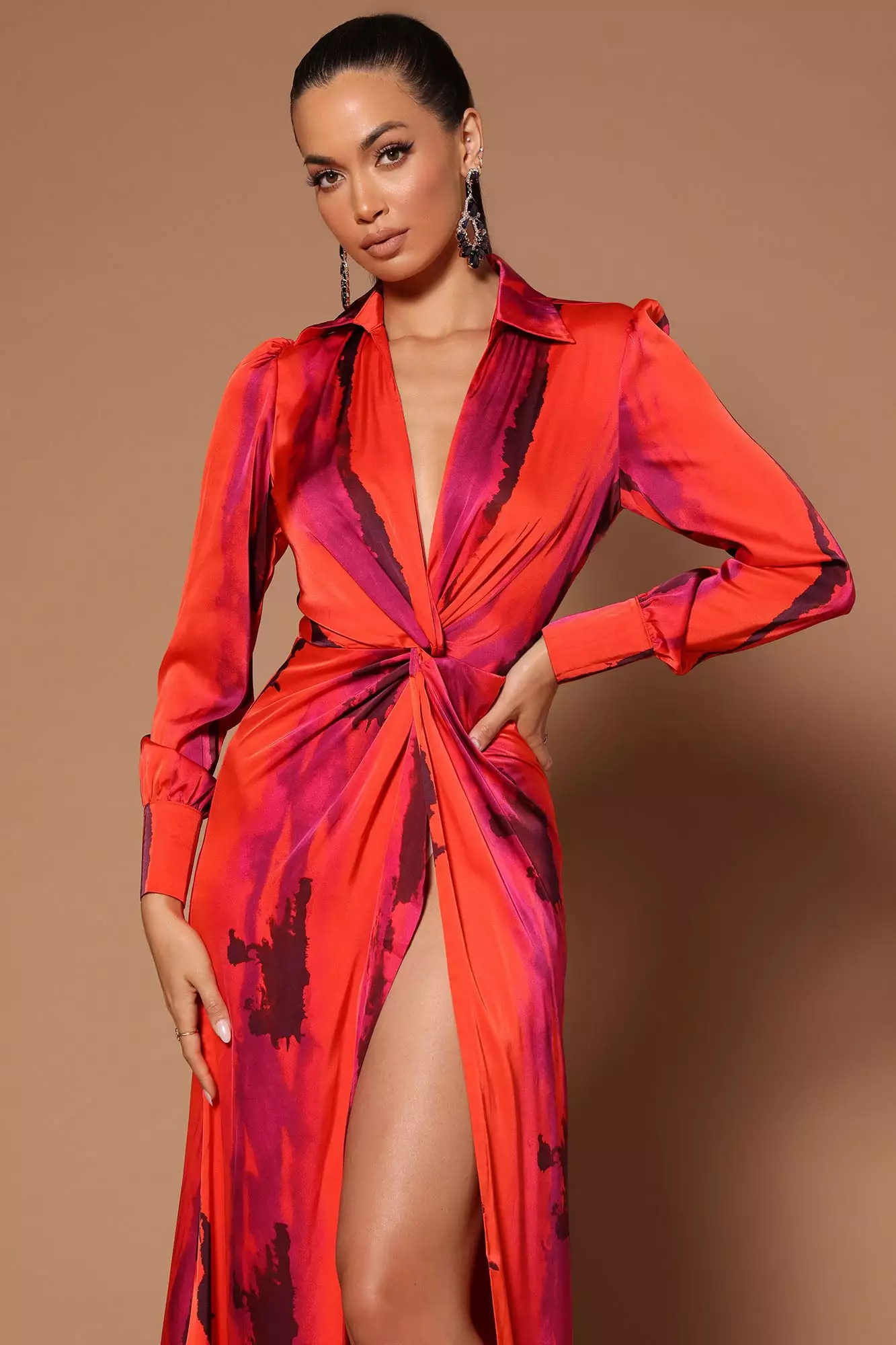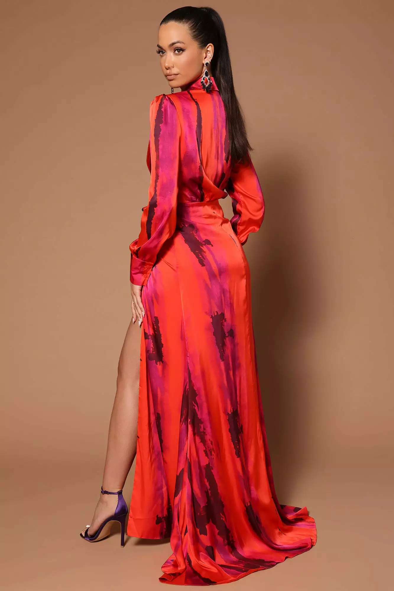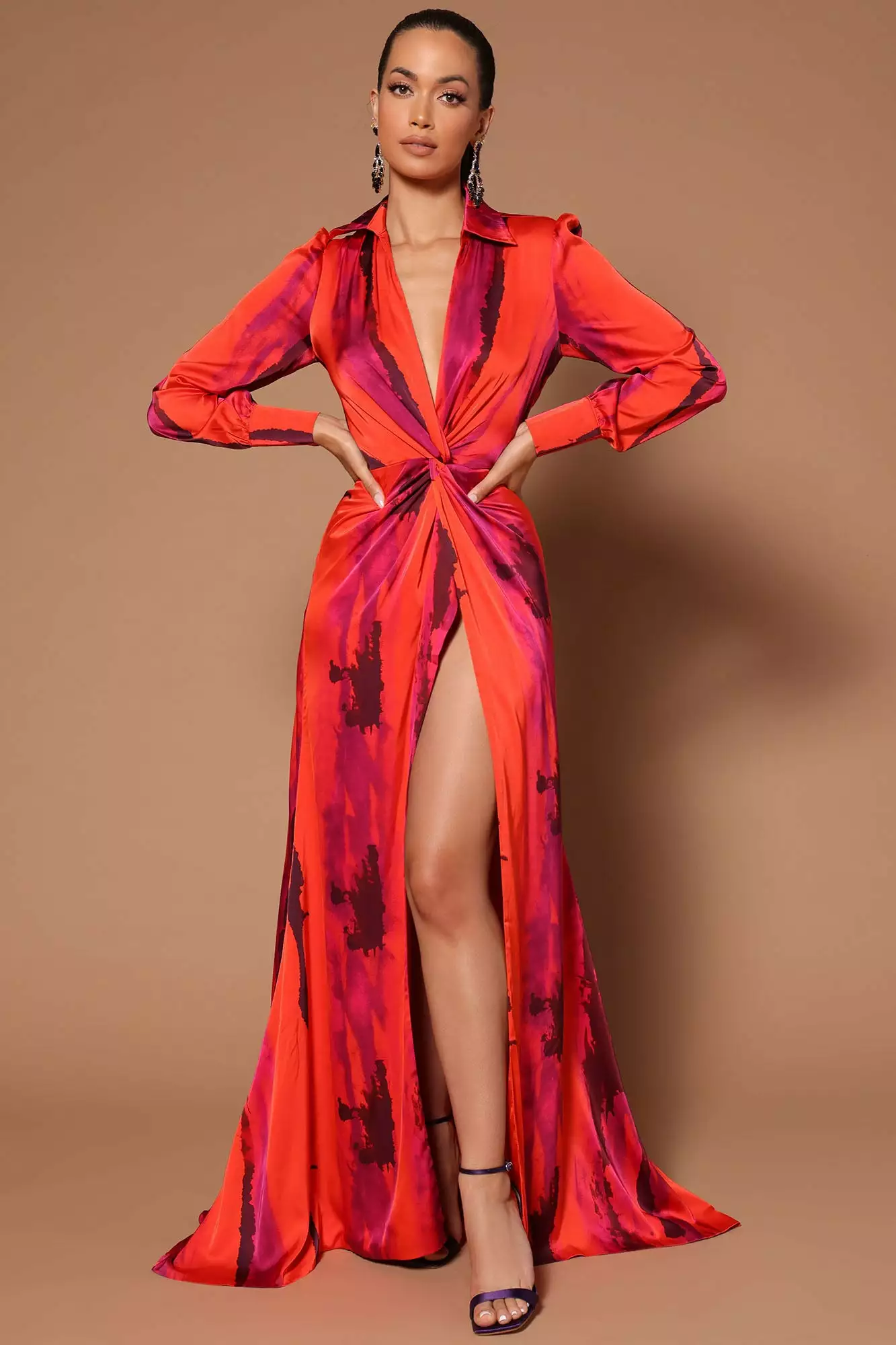 Fashion Nova Gabriella Long Sleeve Maxi Dress – Orange/combo