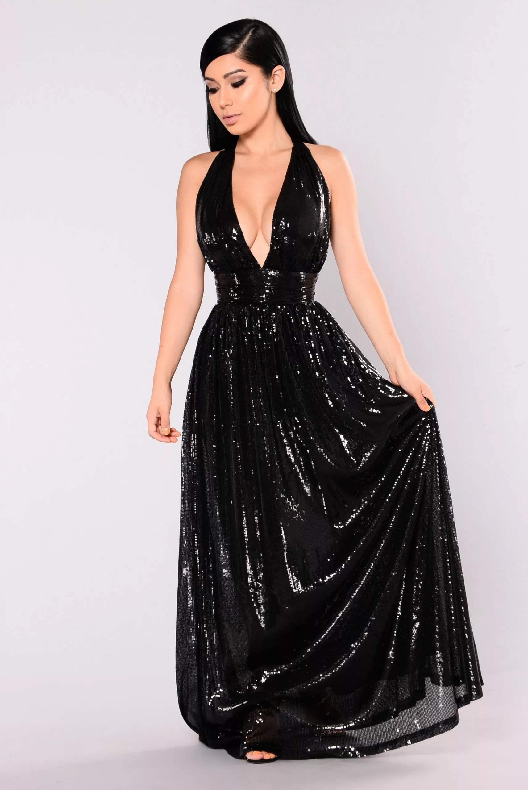 Fashion Nova Go Glam Sequin Maxi Dress – Black