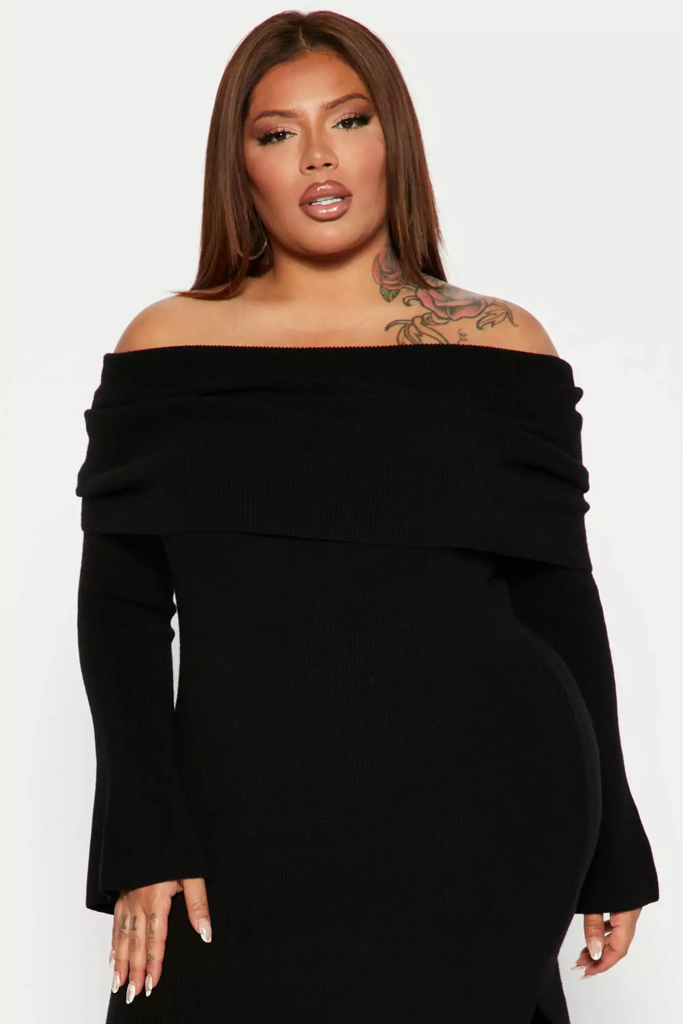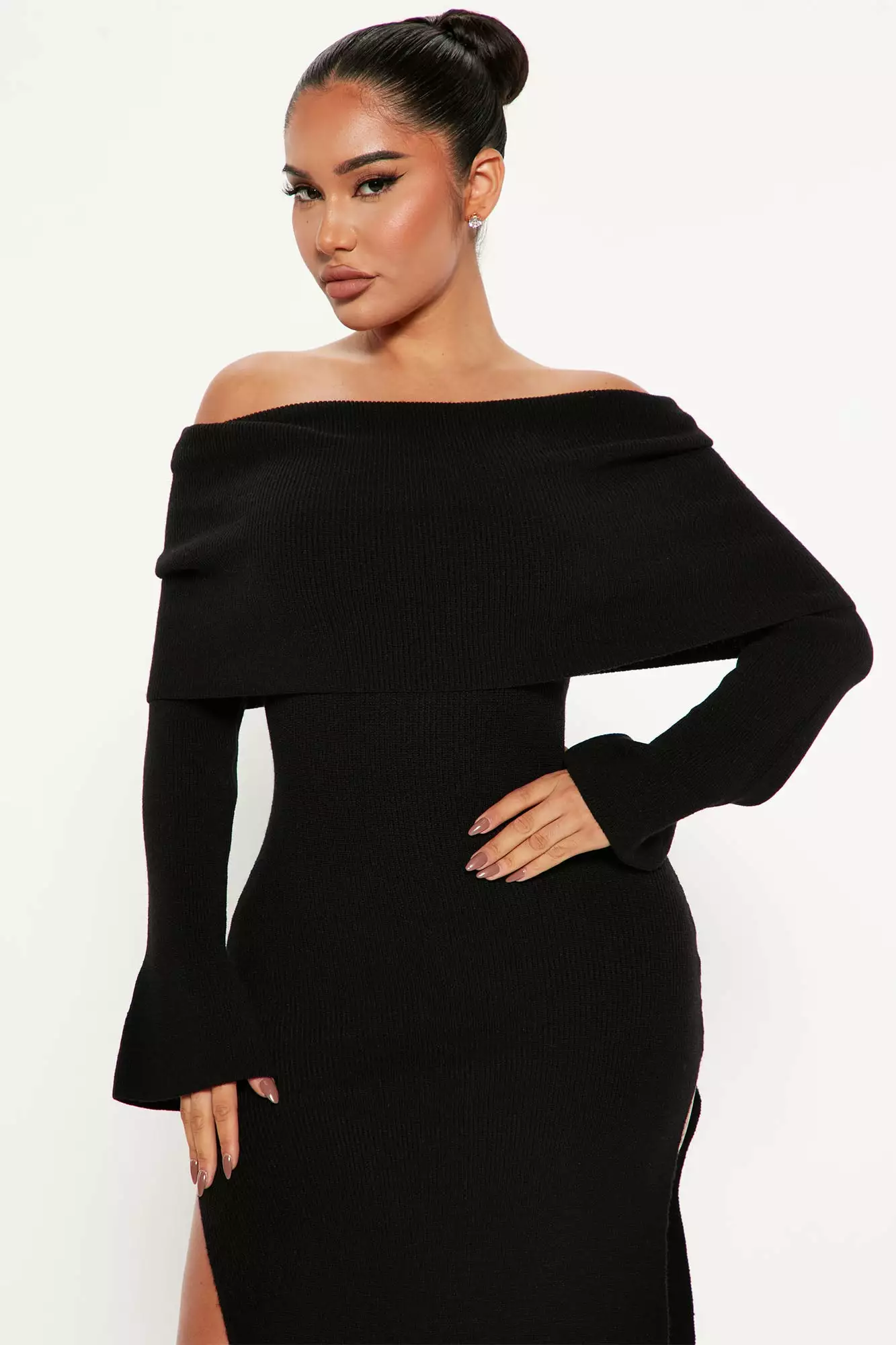 Fashion Nova Grab Some Coco Sweater Maxi Dress – Black