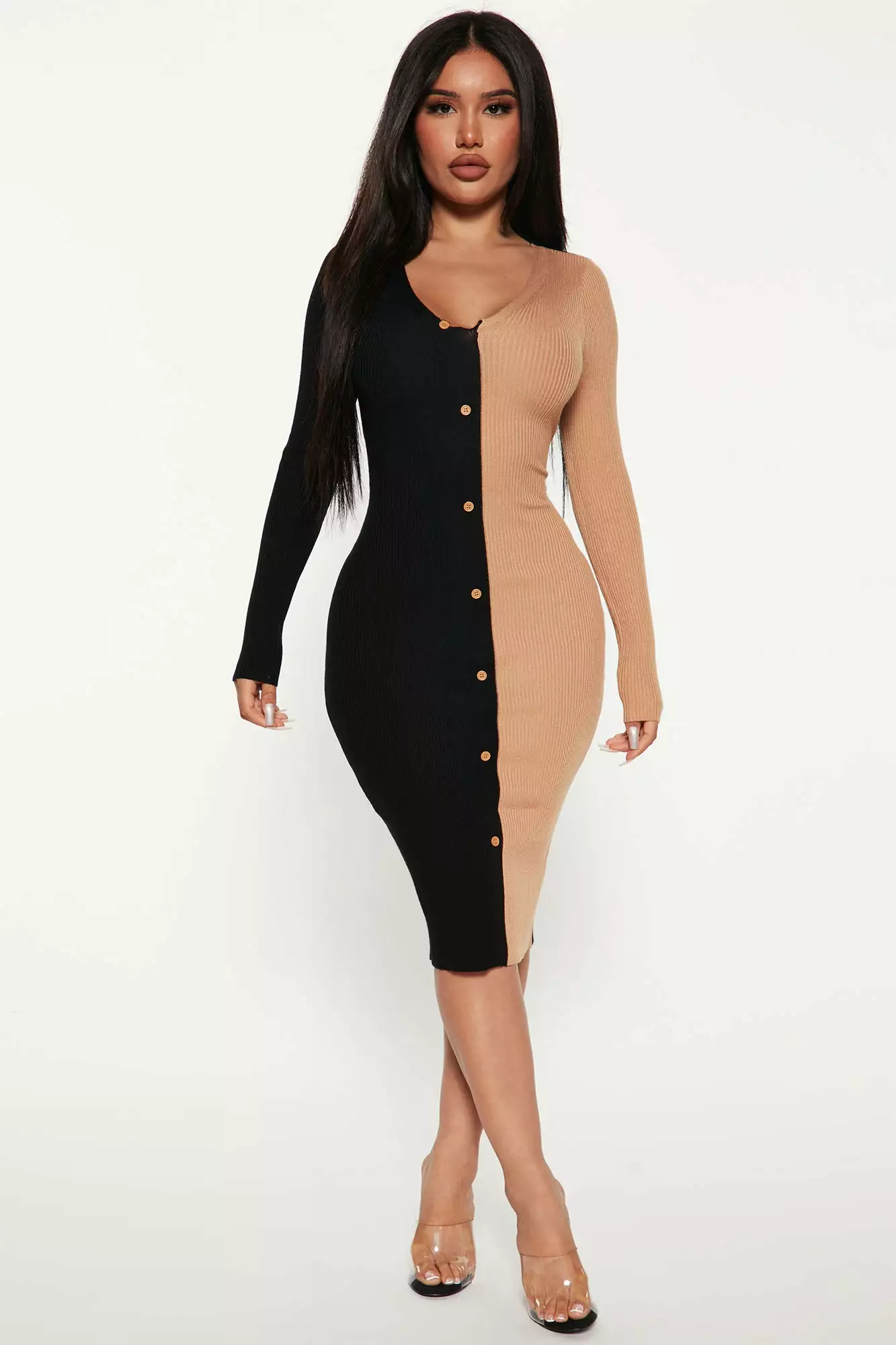 Fashion Nova Hard To Forget Colorblock Midi Dress – Black/combo