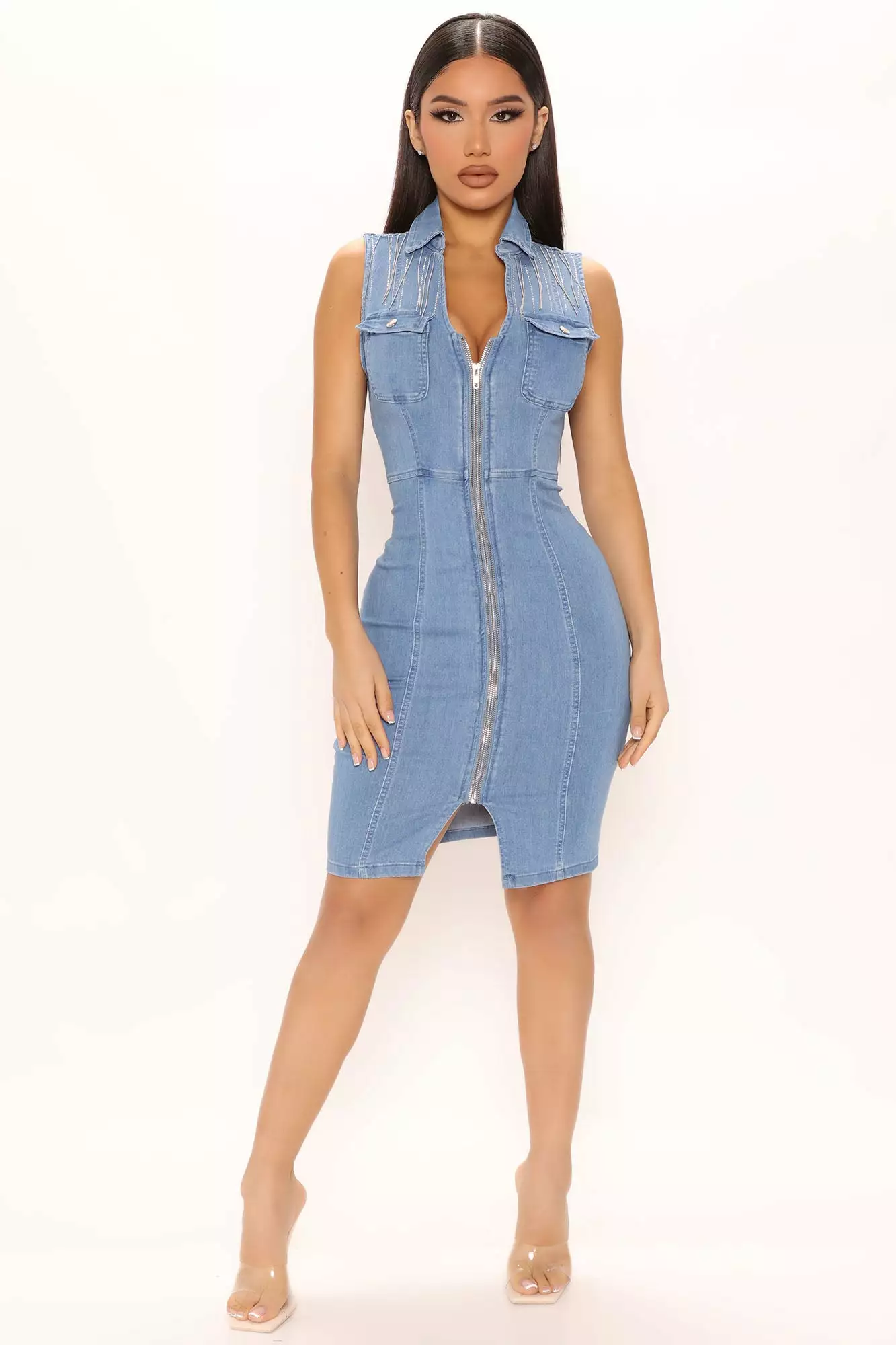 Fashion Nova Harper Denim Mini Dress – Medium Wash