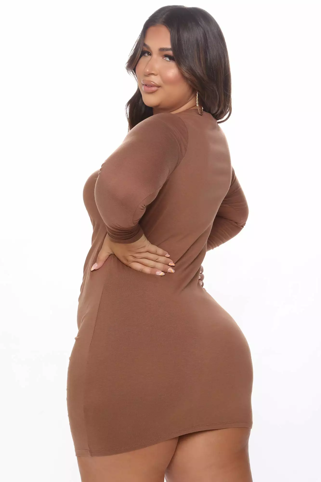 Fashion Nova Heart Rush Ruched Mini Dress – Chocolate