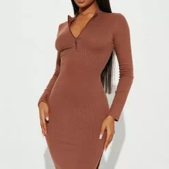 Fashion Nova Heather Ribbed Midi Dress – Chocolate