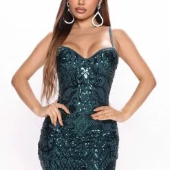 Fashion Nova Helena Sequin Midi Dress – Emerald