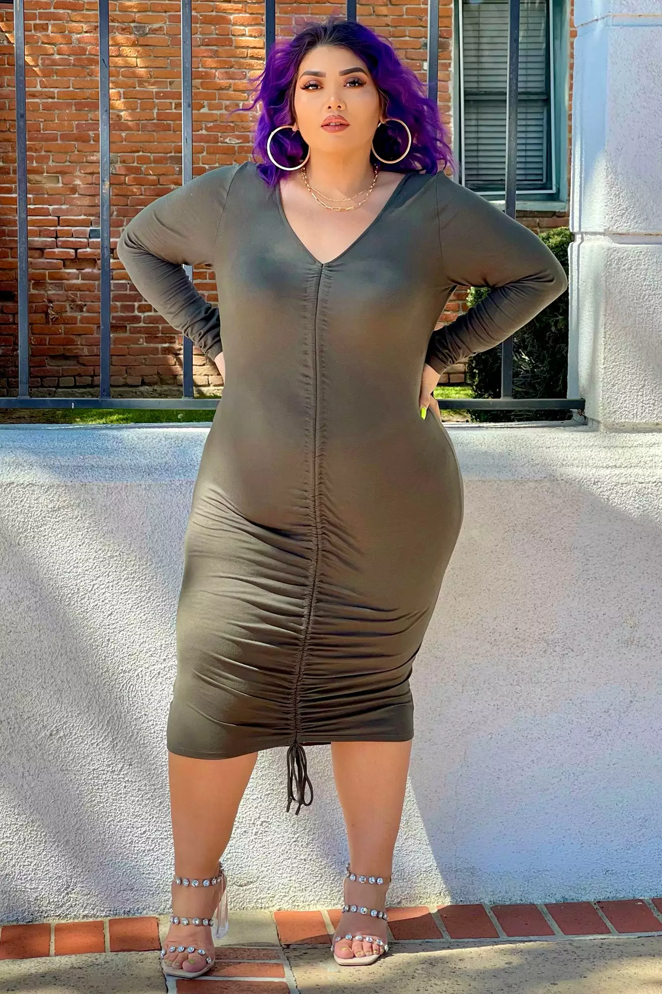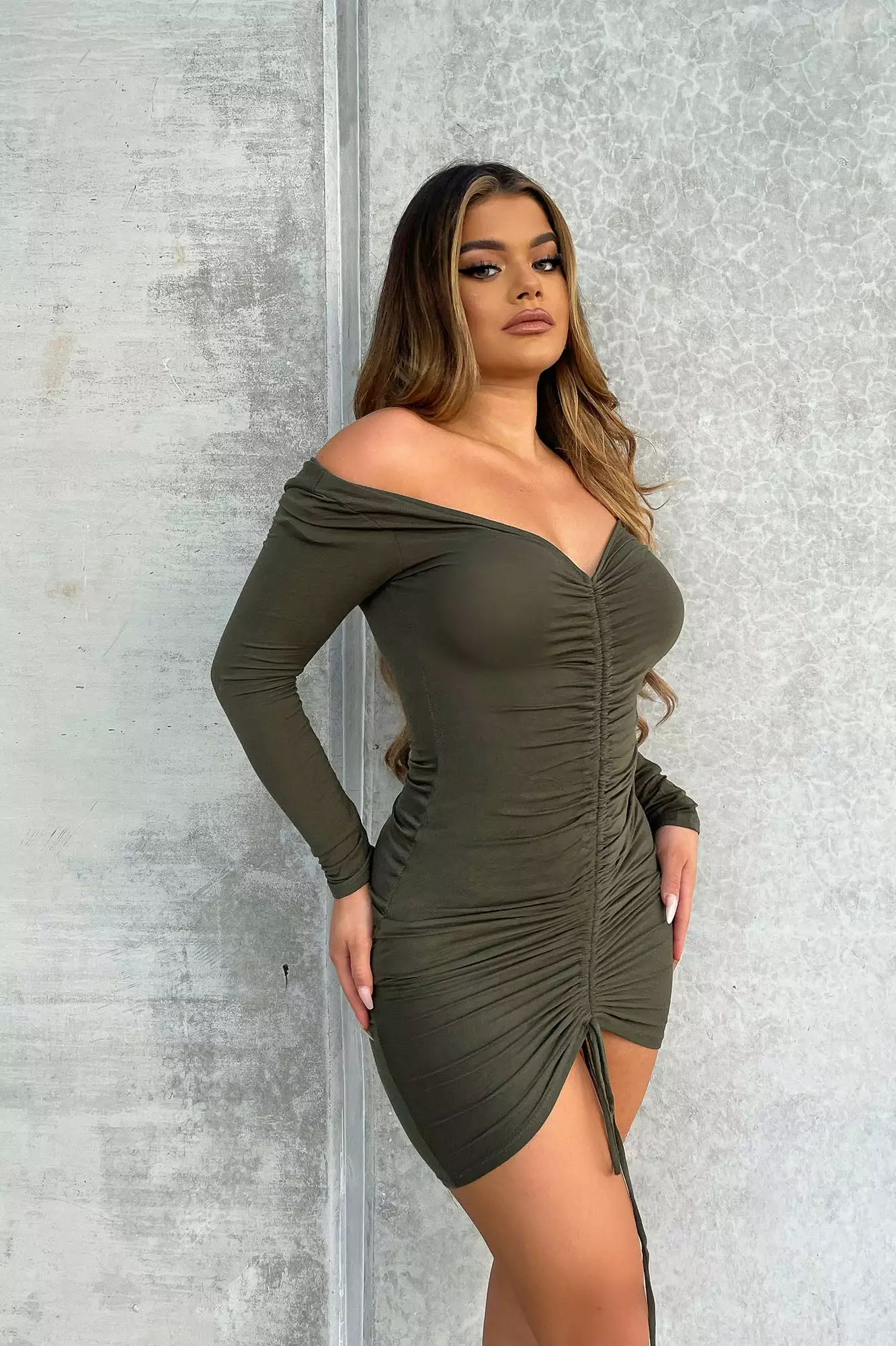 Fashion Nova Hong Kong Ruched Dress – Olive