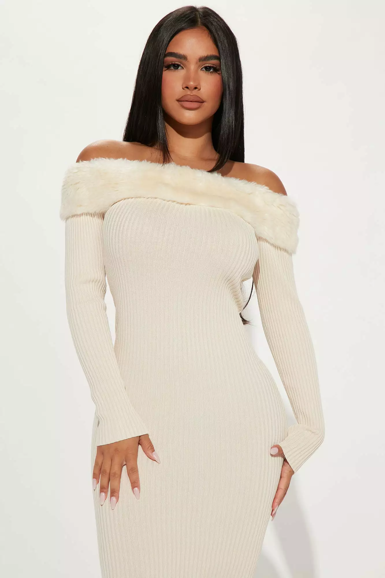 Fashion Nova Hot And Cold Maxi Dress – Beige