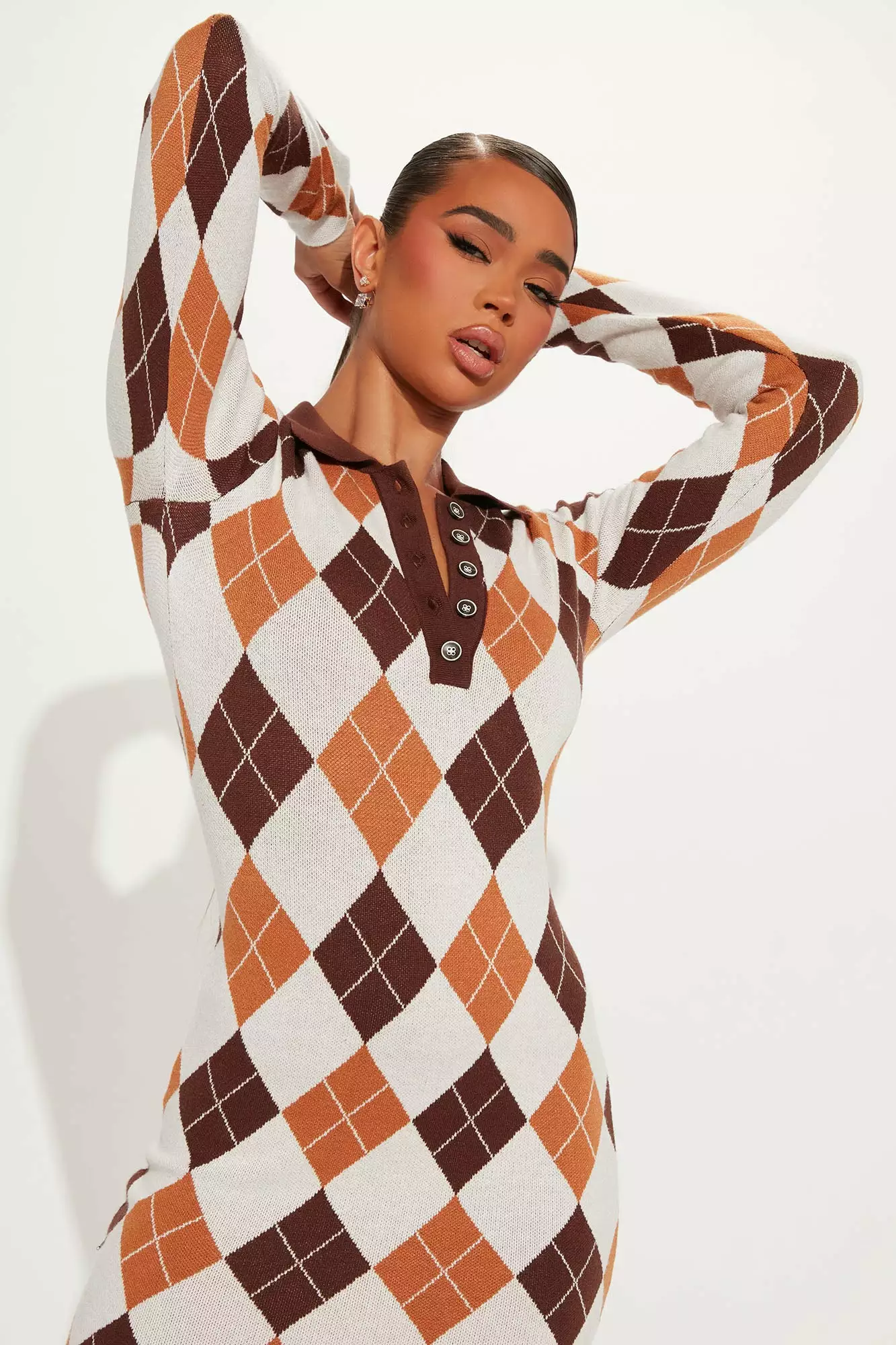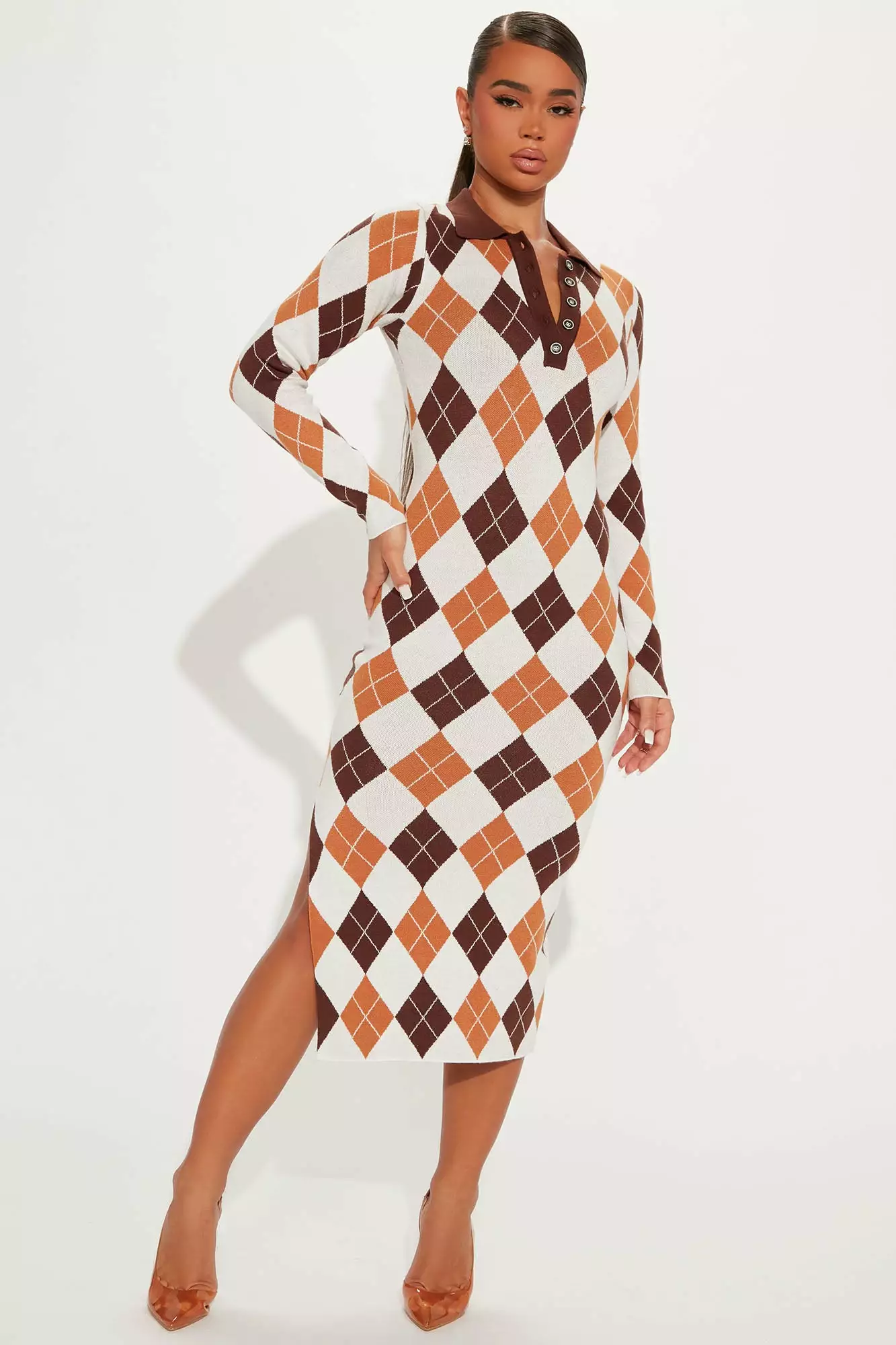 Fashion Nova Hot Cocoa Sweater Midi Dress – Brown/combo