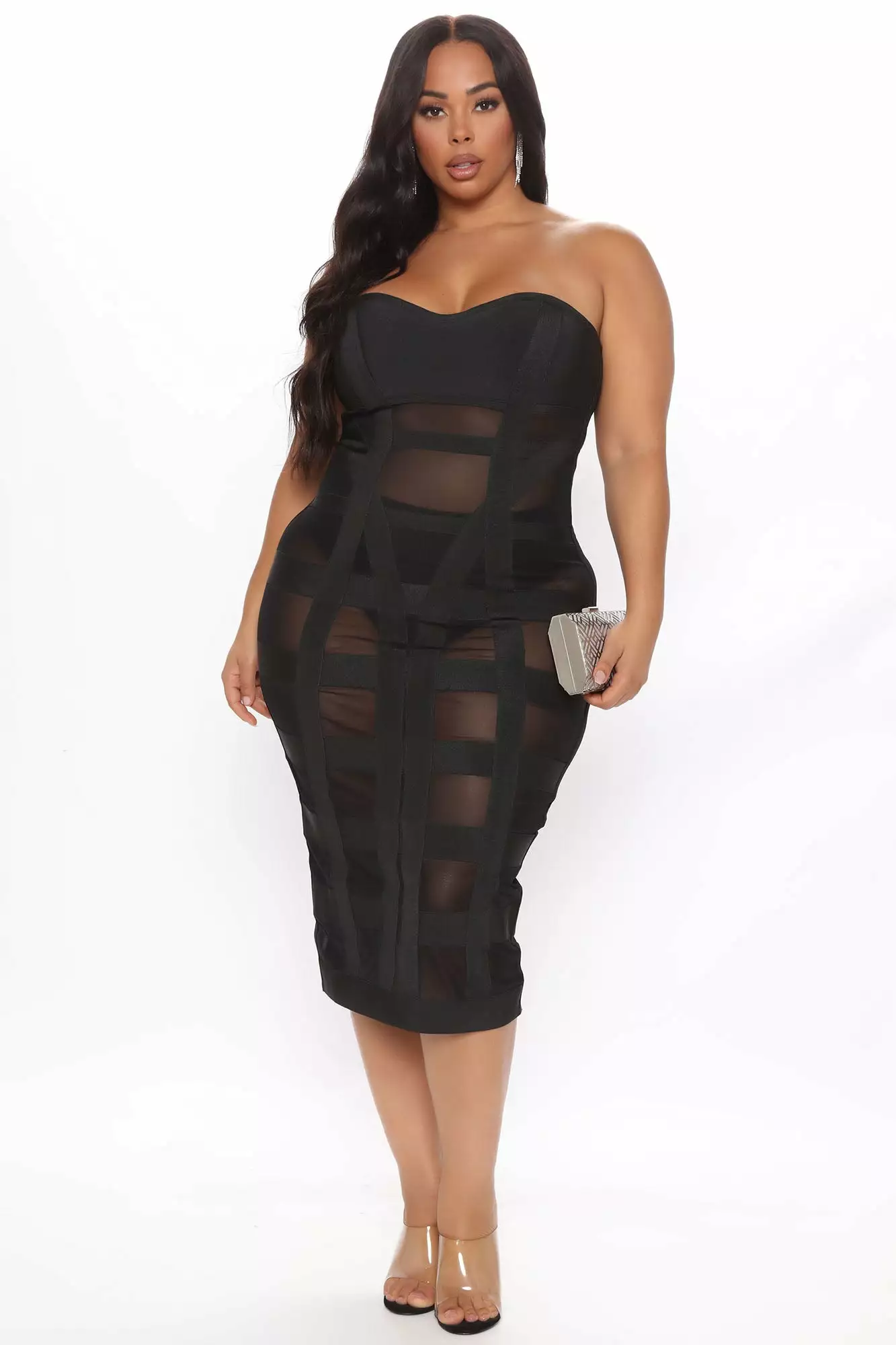 Fashion Nova Hot Night Out Bandage Midi Dress – Black