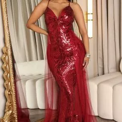 Fashion Nova Impeccable Visions Sequin Maxi Dress – Burgundy