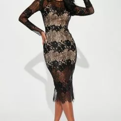 Fashion Nova Italian Romance Lace Midi Dress – Black