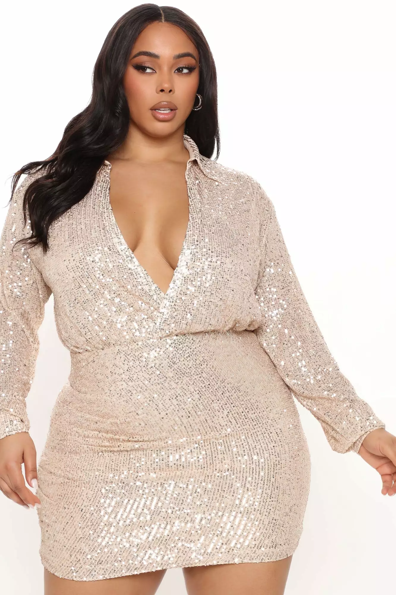 Fashion Nova It’s Cocktail Hour Sequin Mini Dress – Rose Gold