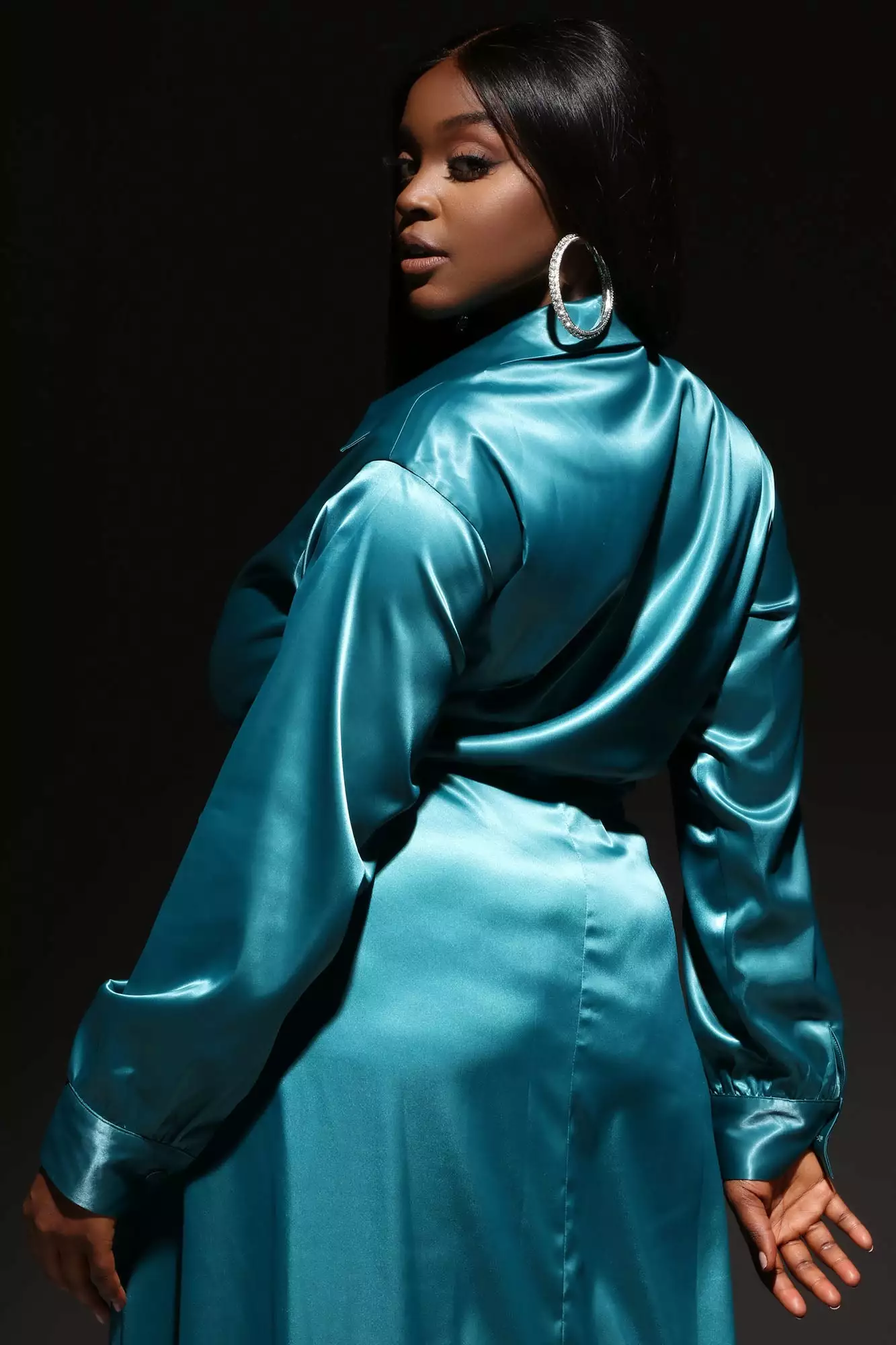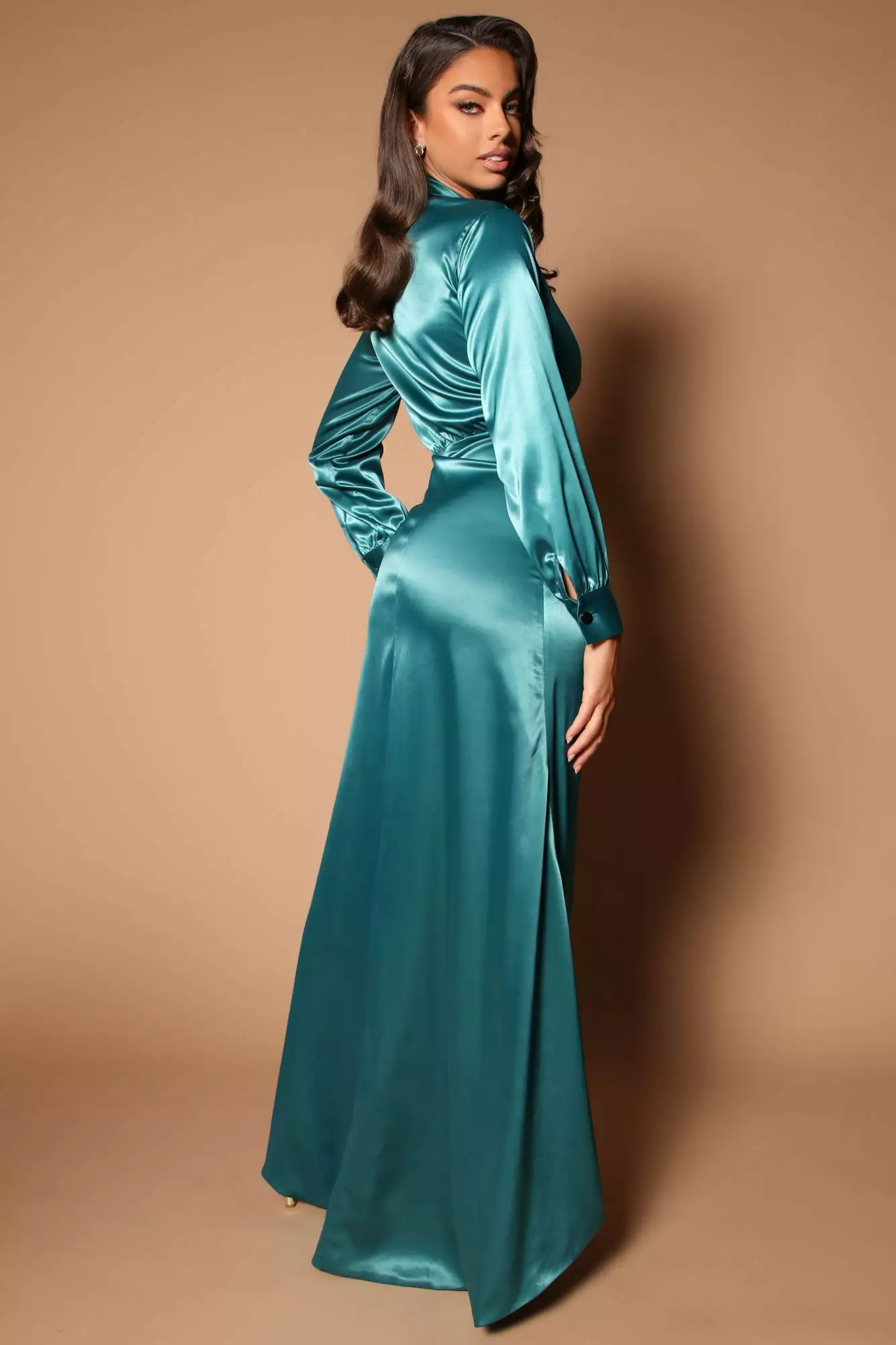 Fashion Nova Ivana Long Sleeve Satin Maxi Dress – Teal