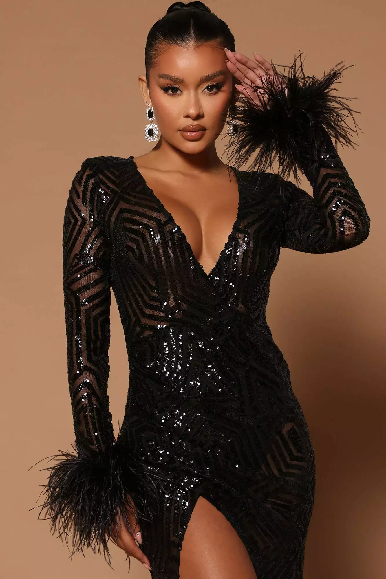 Fashion Nova Ivanka Sequin Maxi Dress – Black