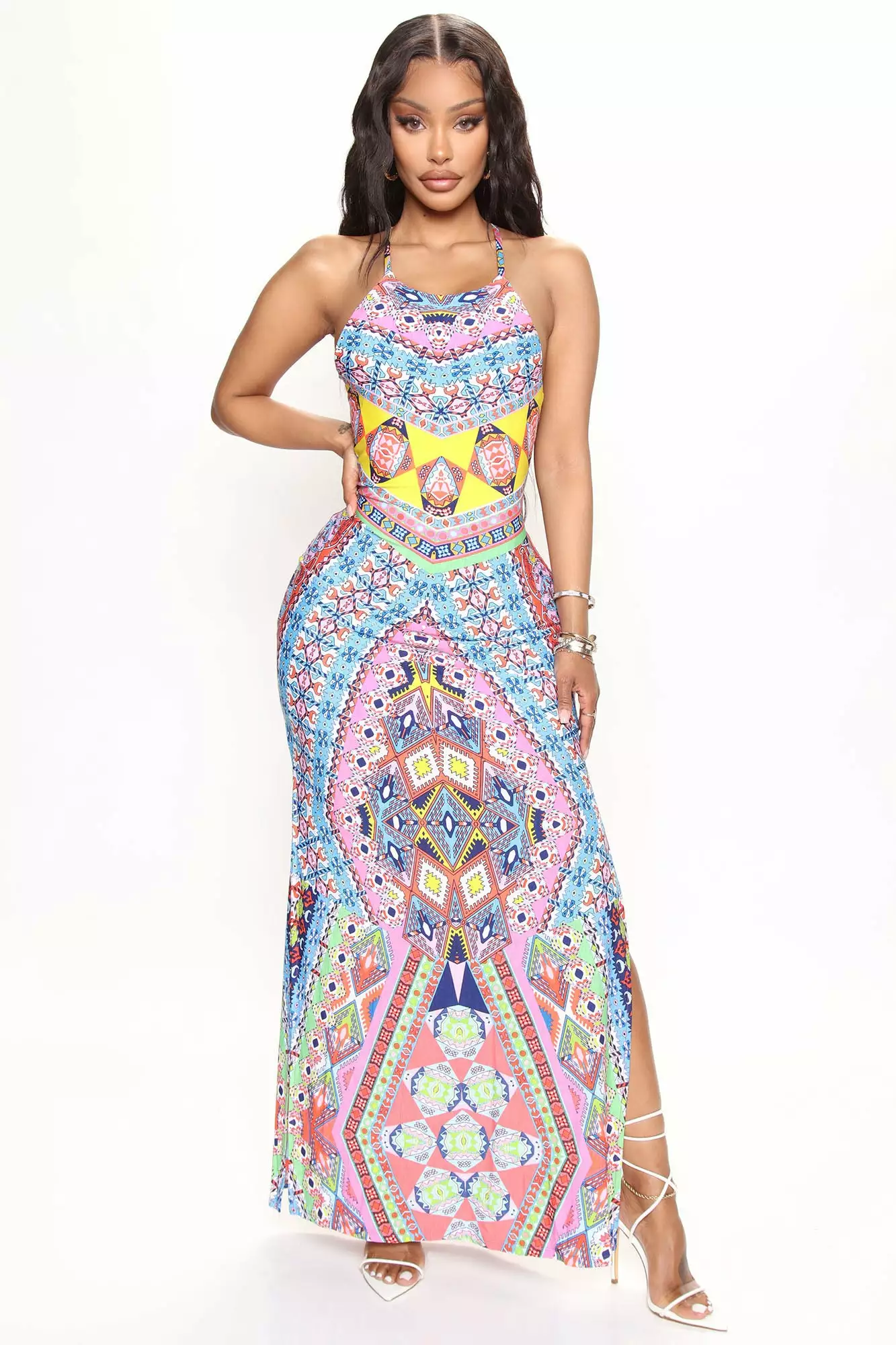 Fashion Nova Jadine Printed Maxi Dress – Blue/combo