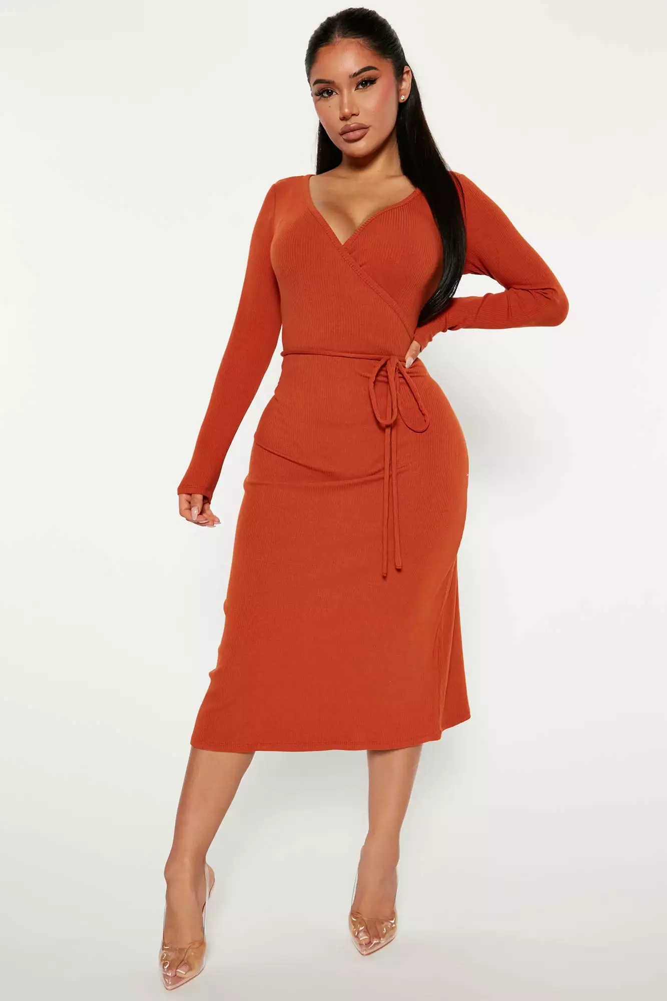 SKU: 6537511534716 Category: Midi Dresses Tags: All Promo, casualdresses, color:Rust, ColorFam-Brown, Dresses, length:Midi, Long Sleeve, Midi, New Arrivals