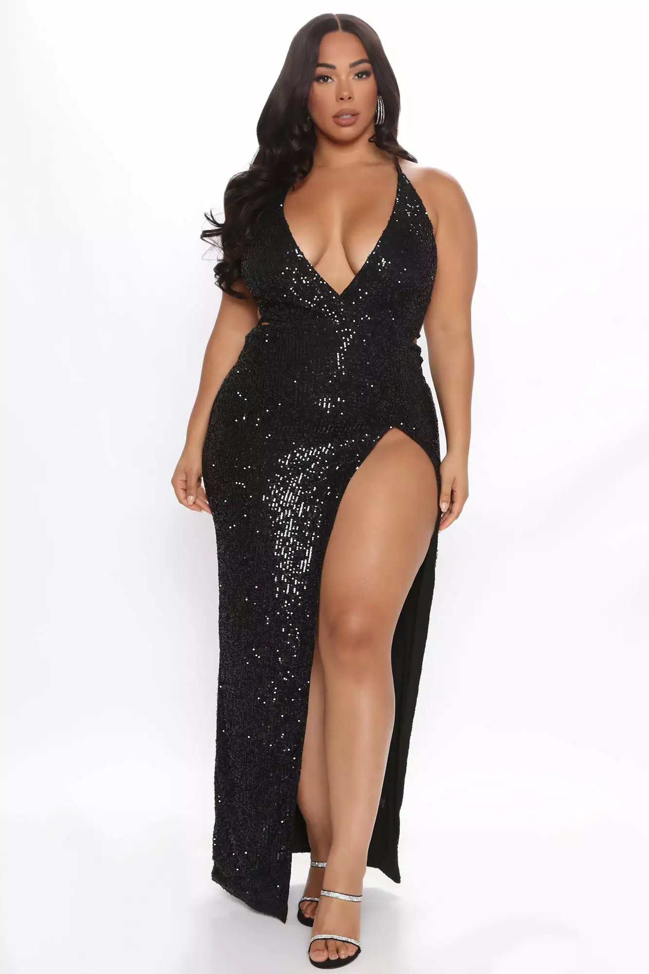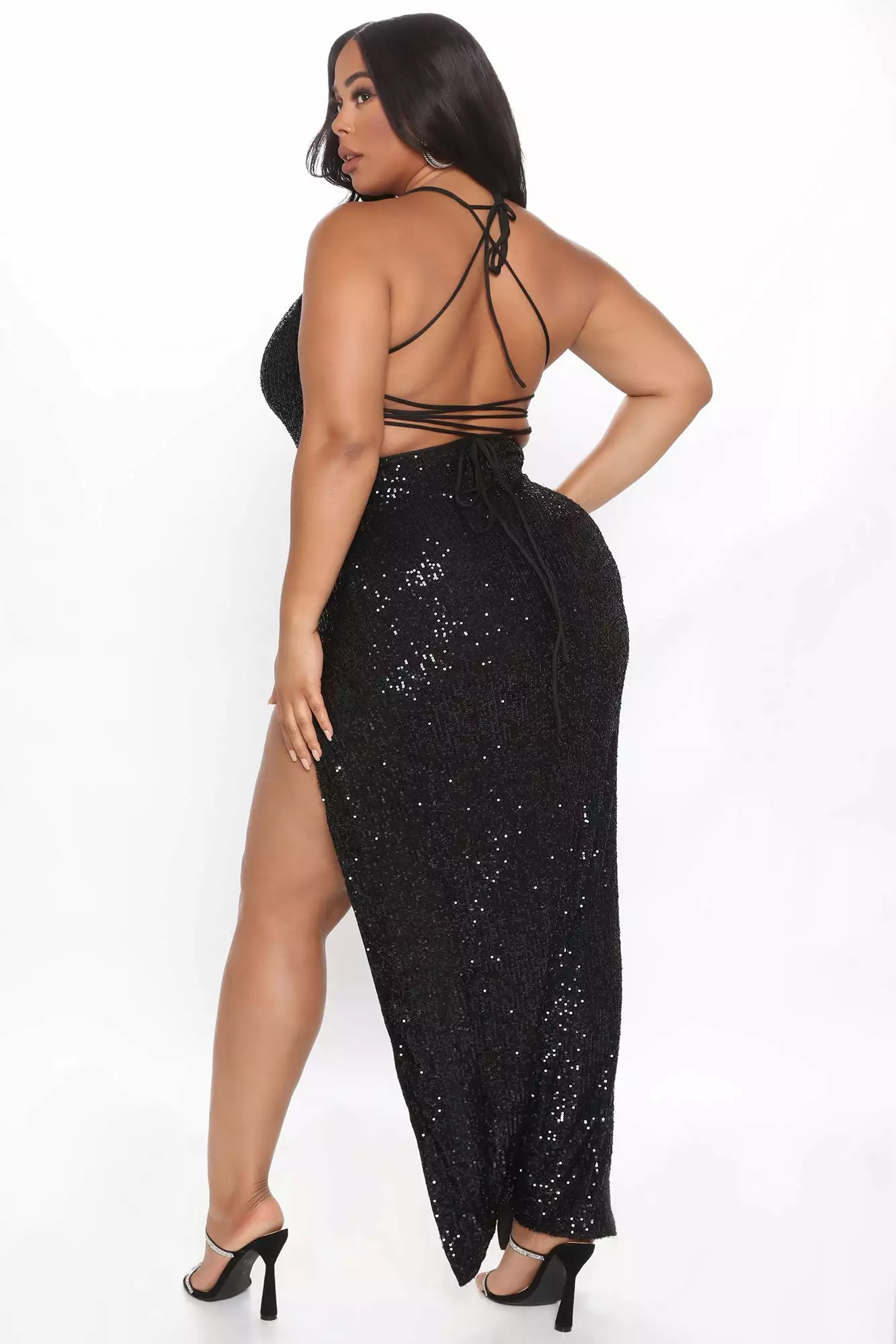 Fashion Nova Jaw Dropping Sequin Maxi Dress – Black