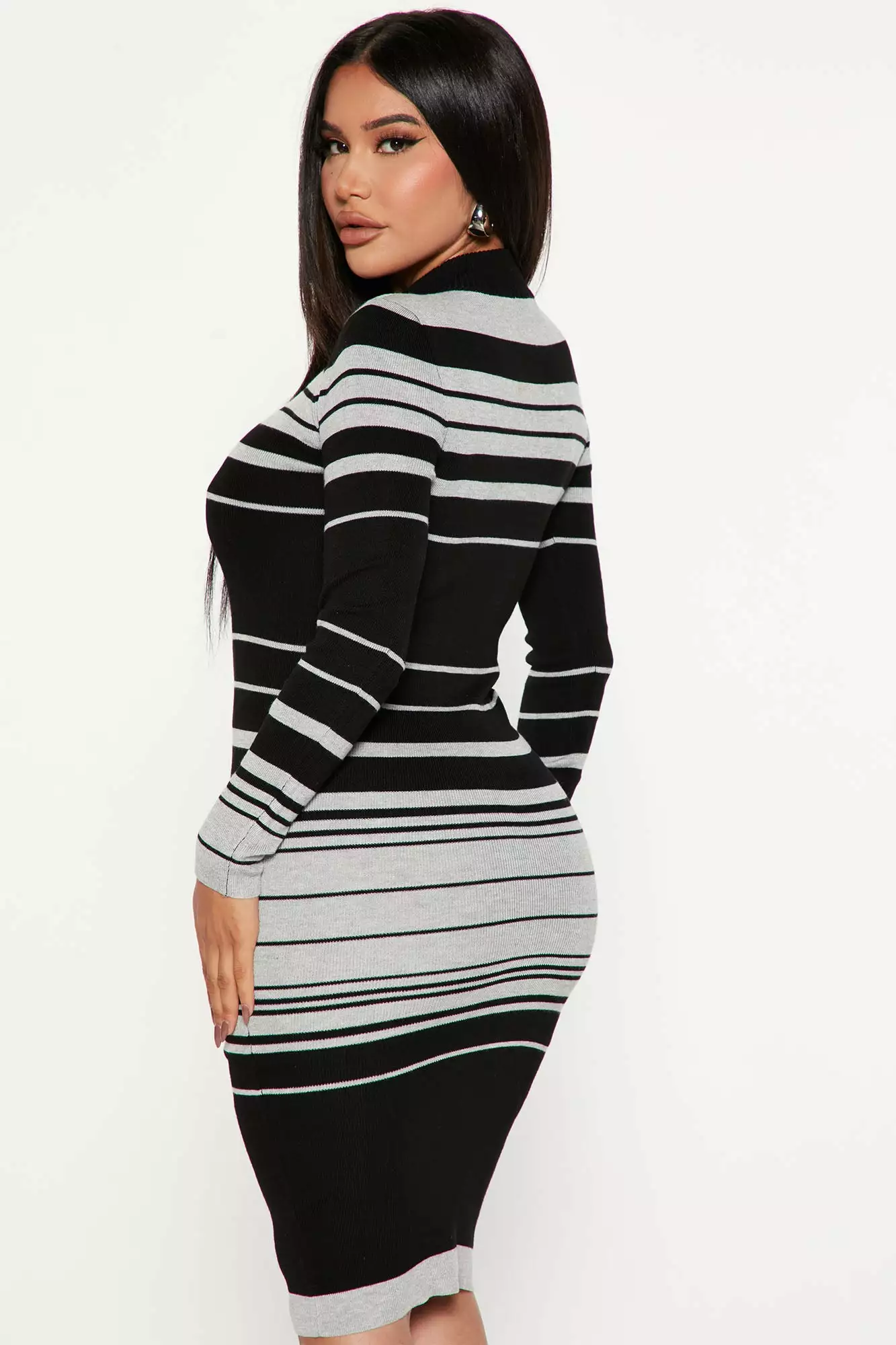 Fashion Nova Just In Time Striped Midi Dress – Grey/combo