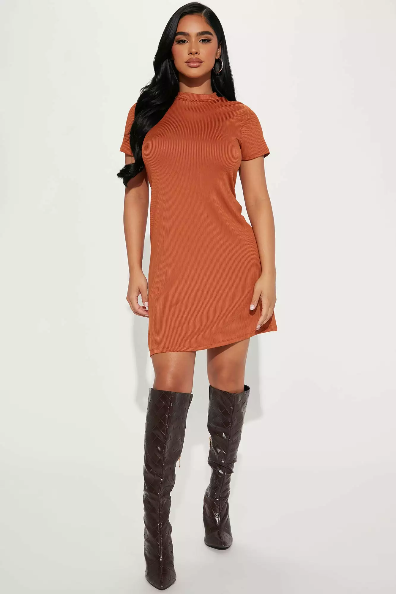 Fashion Nova Kaylei Ribeed Mini Dress – Camel