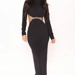 Fashion Nova Kendall Cut Out Maxi Dress – Black