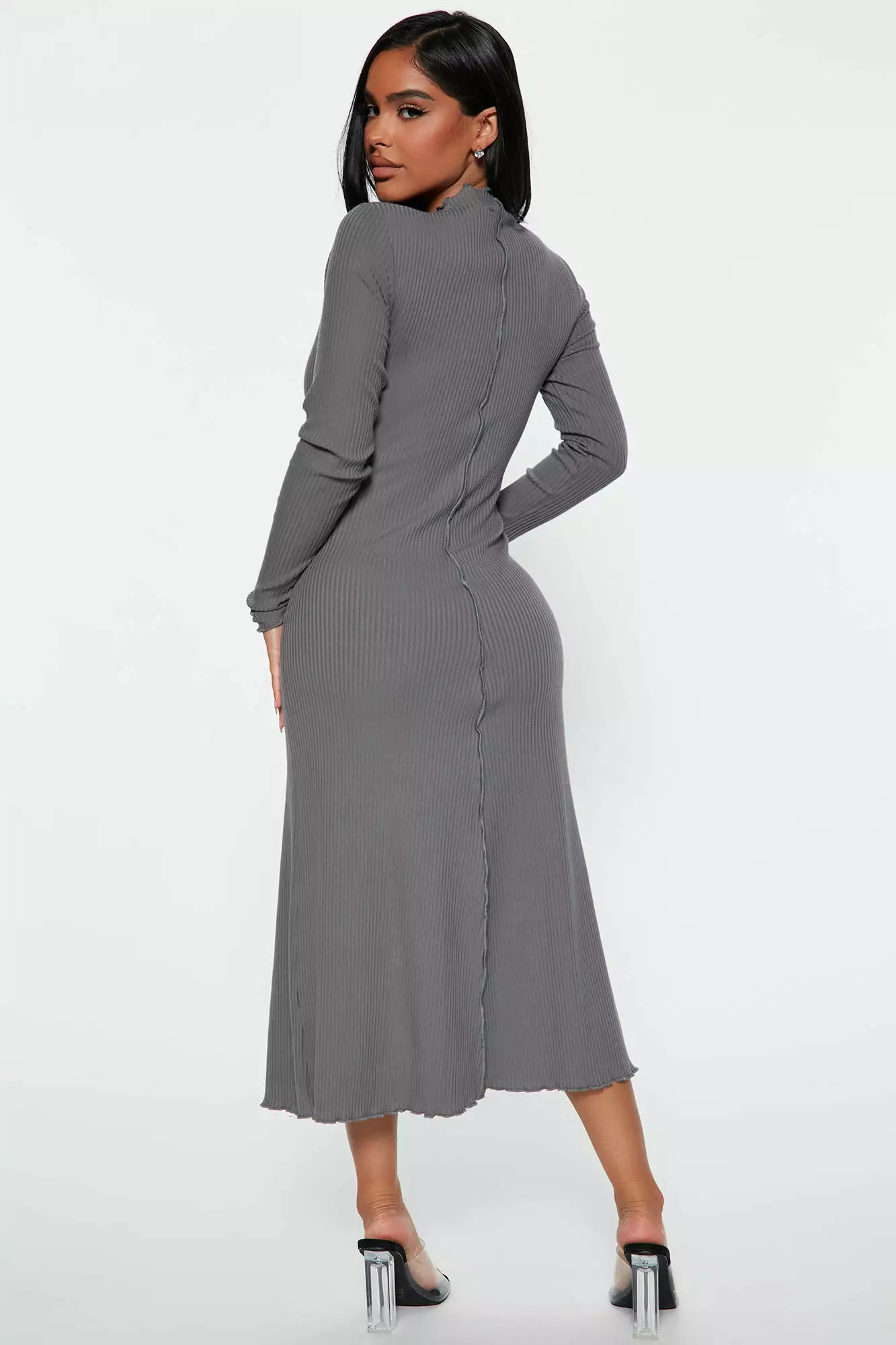 Fashion Nova Kimmie Ribbed Midi Dress – Grey