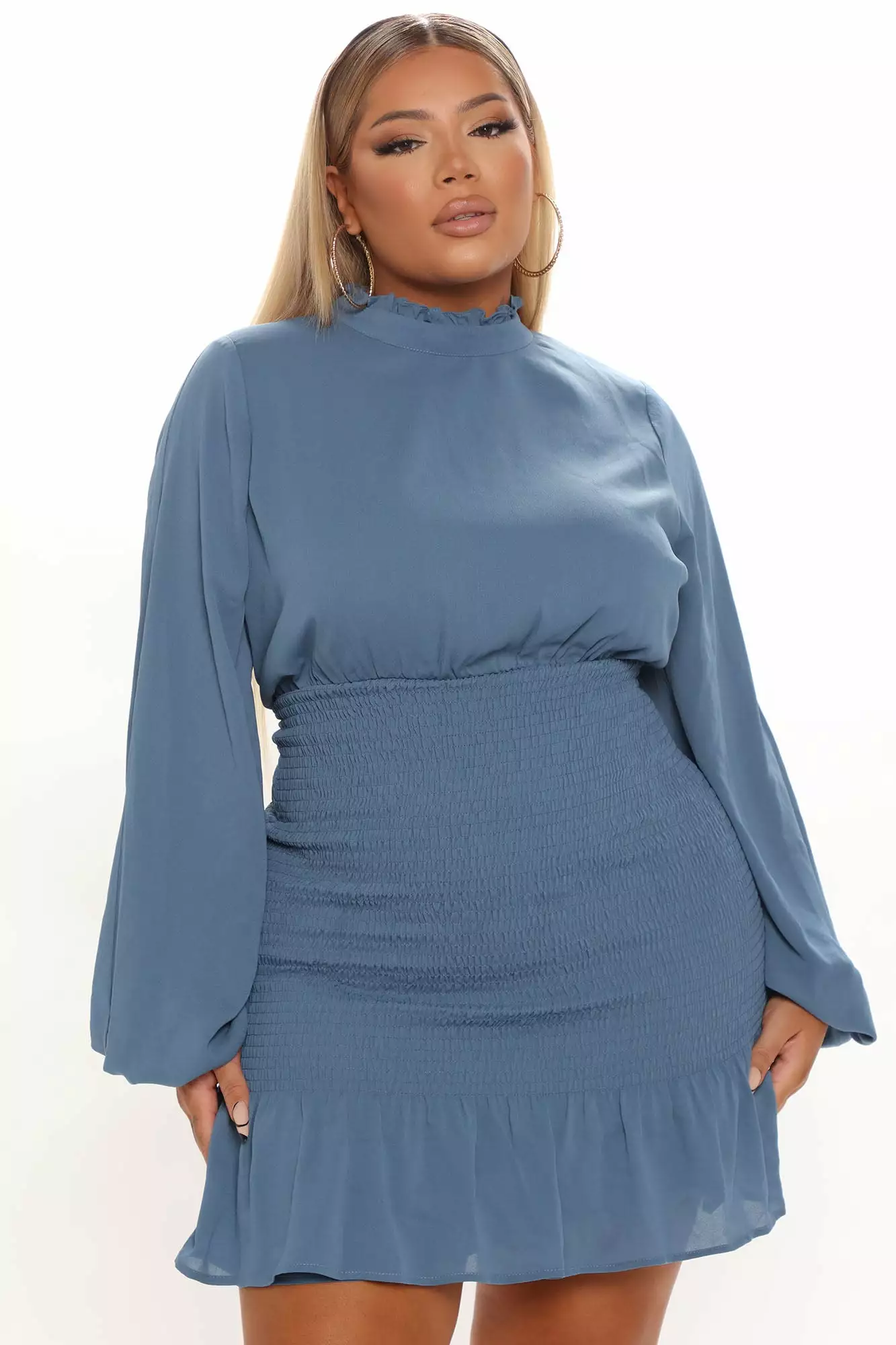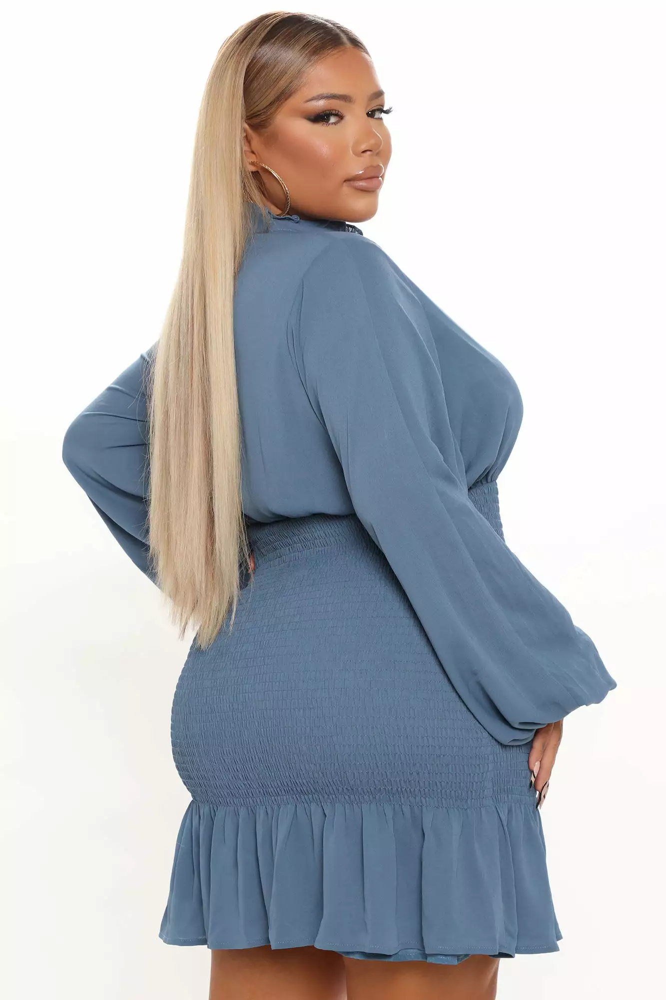 Fashion Nova Kisses Smocked Mini Dress – Teal