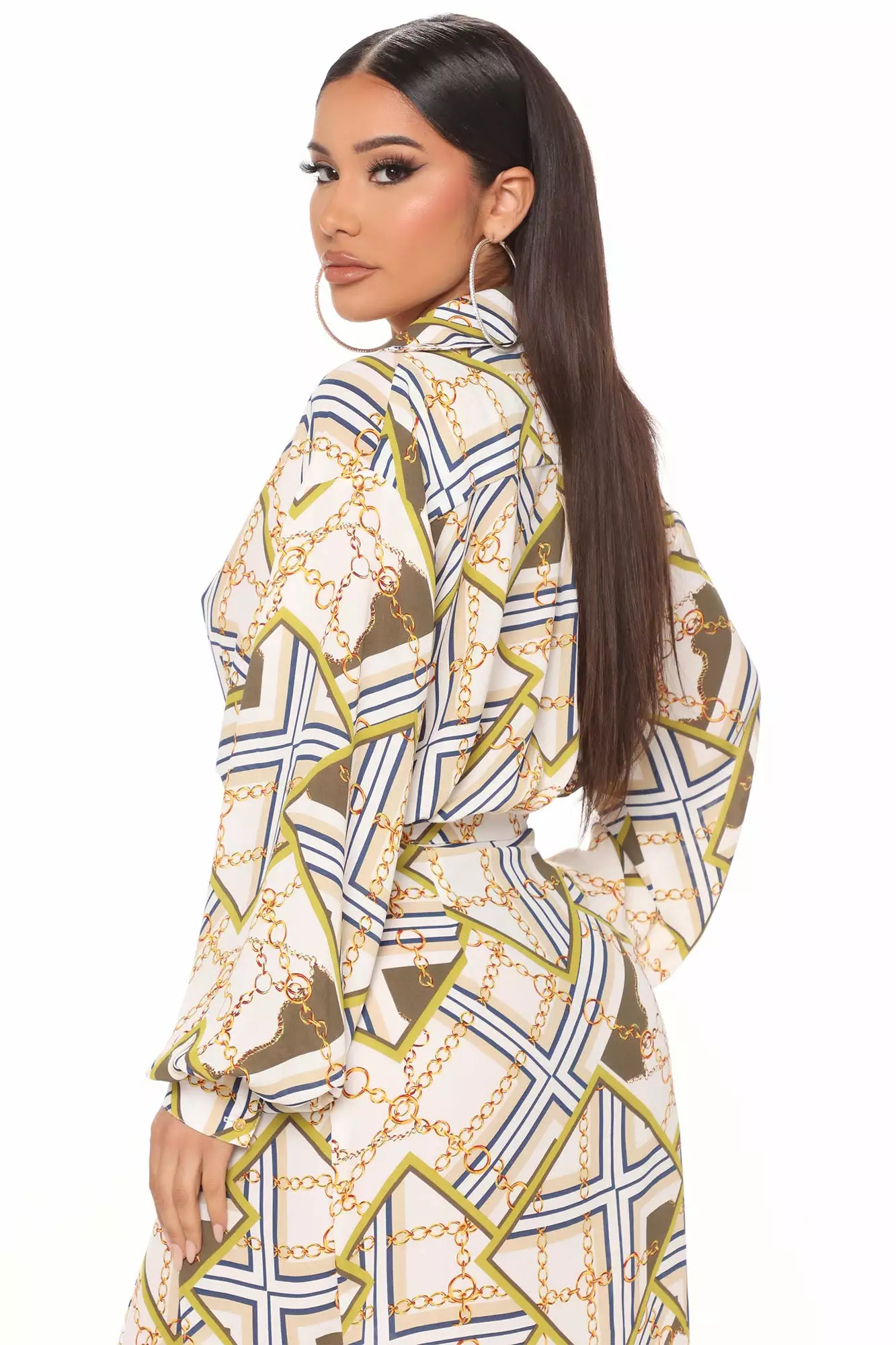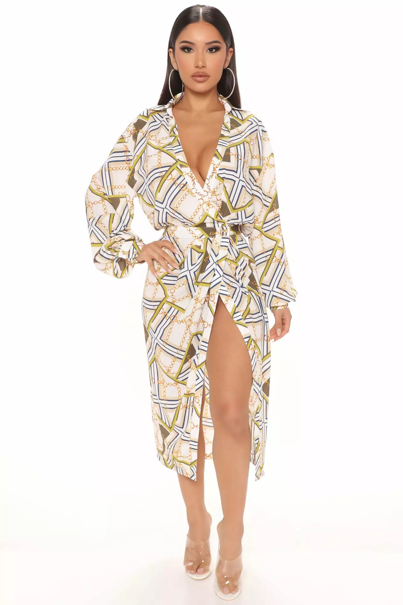 Fashion Nova Lavina Midi Shirt Dress – White/combo