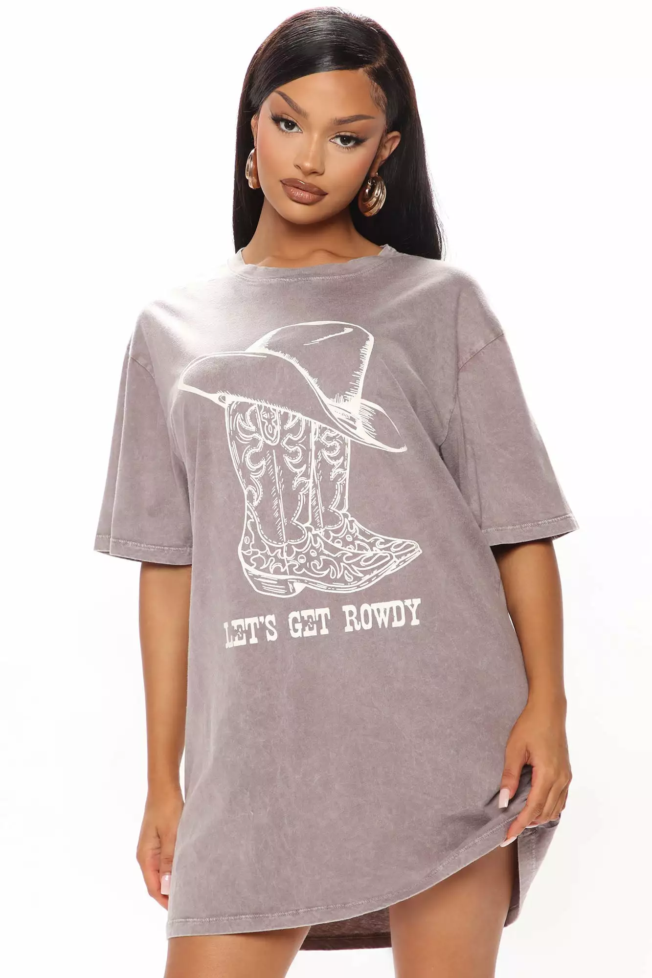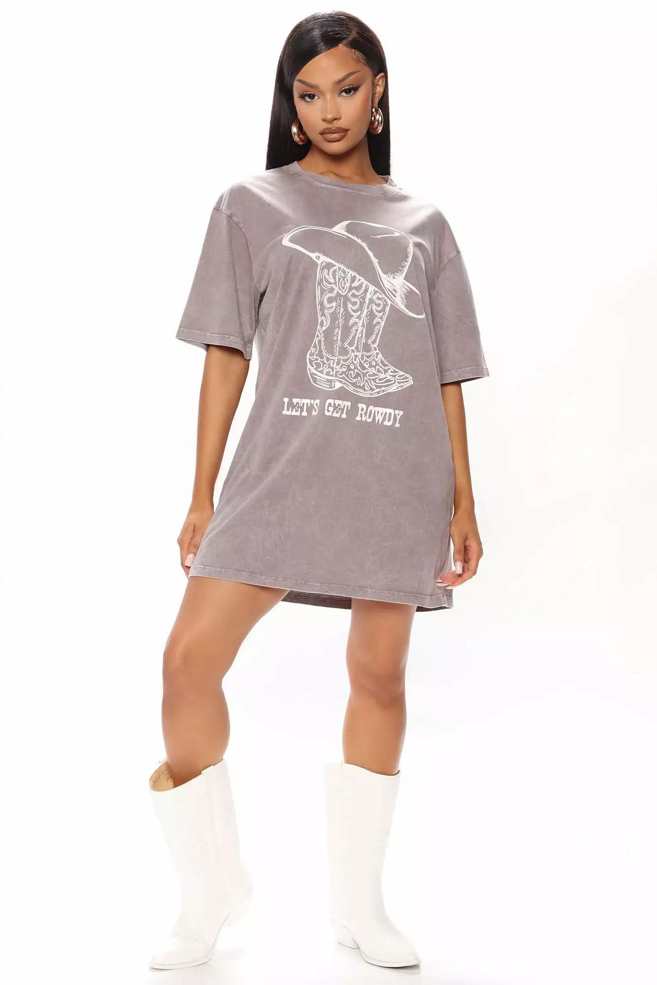Fashion Nova Let’s Get Rowdy Short Sleeve Mini Dress – Brown