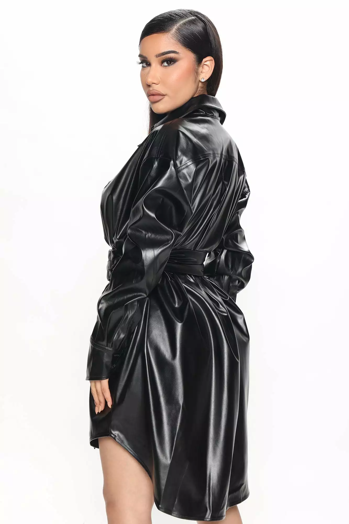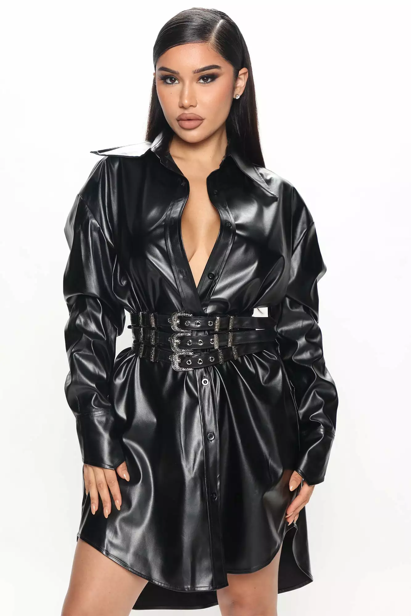 - Faux Leather Mini Shirt Dress