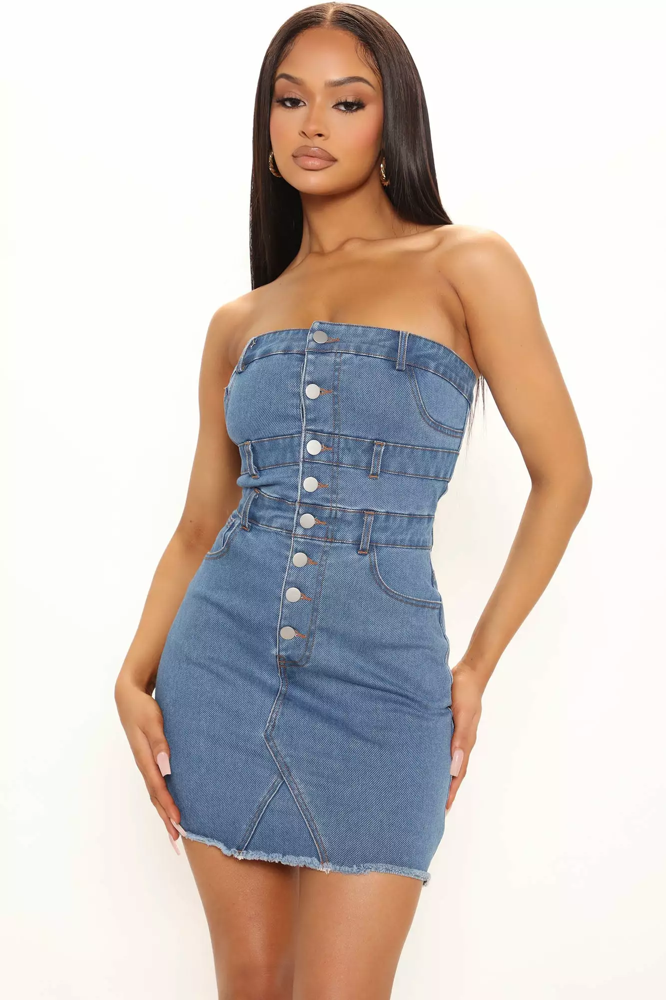 Fashion Nova Like Heaven Denim Mini Dress – Medium Wash