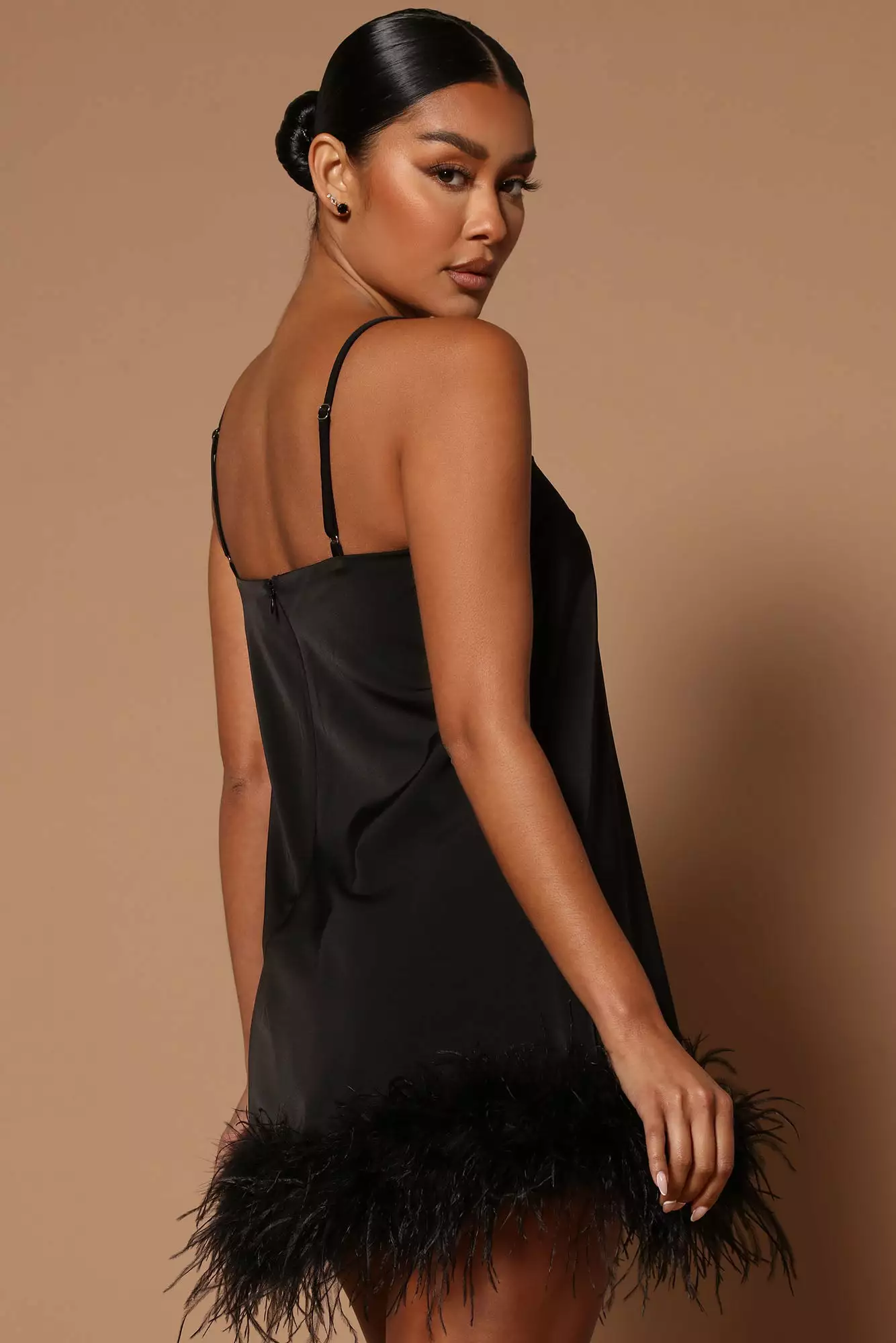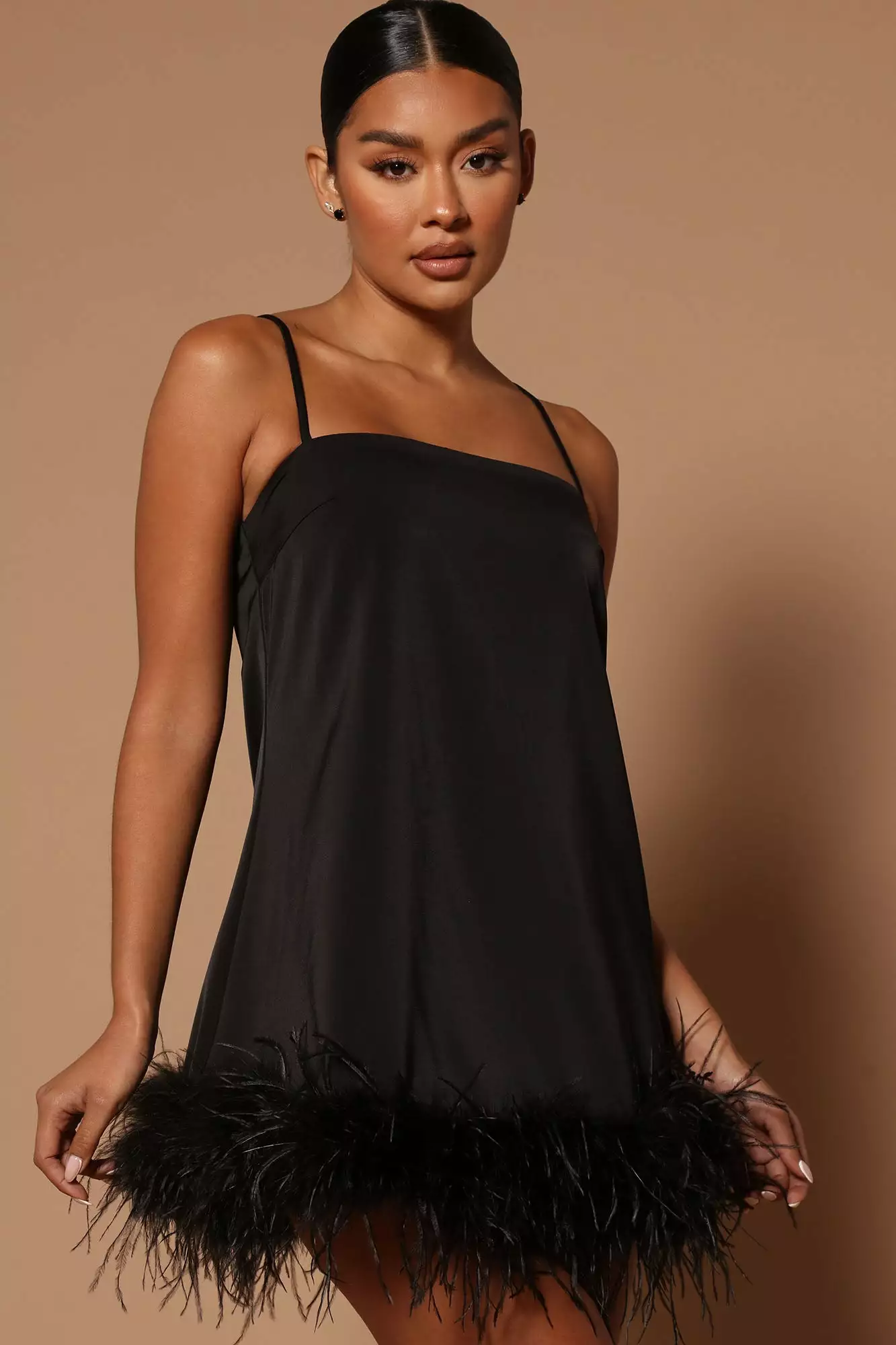 Fashion Nova Lilah Feather Trim Square Neck Mini Dress – Black