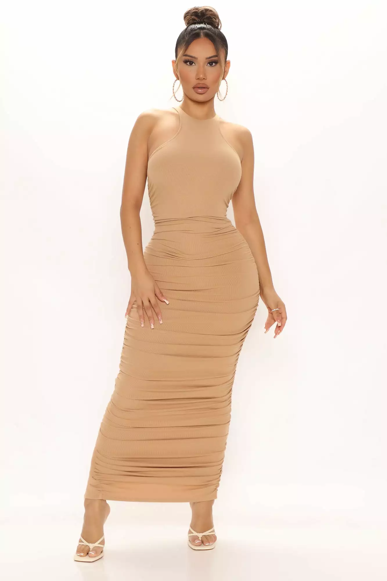 Fashion Nova Living For It Ribbed Midi Dress – Mocha
