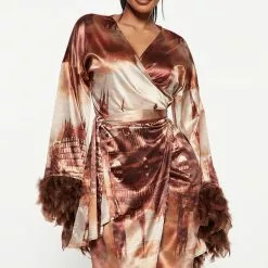 Fashion Nova London Gal Satin Mini Dress – Brown/combo
