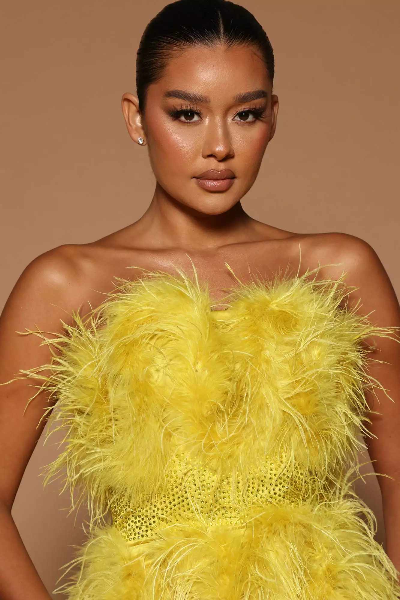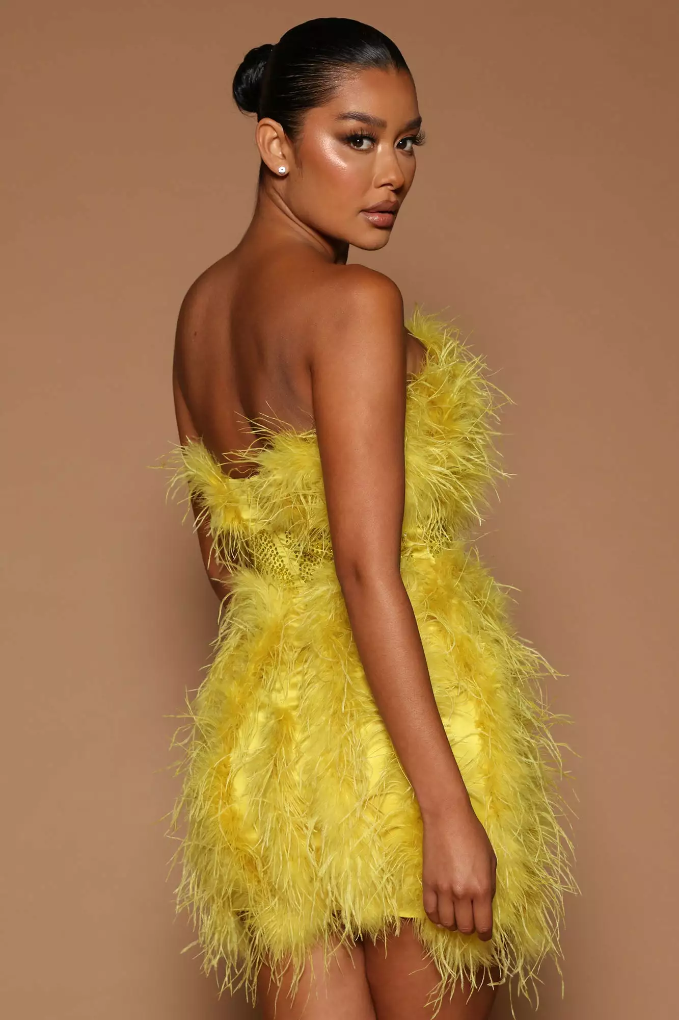 Fashion Nova Lorina Feather Mini Dress – Chartreuse