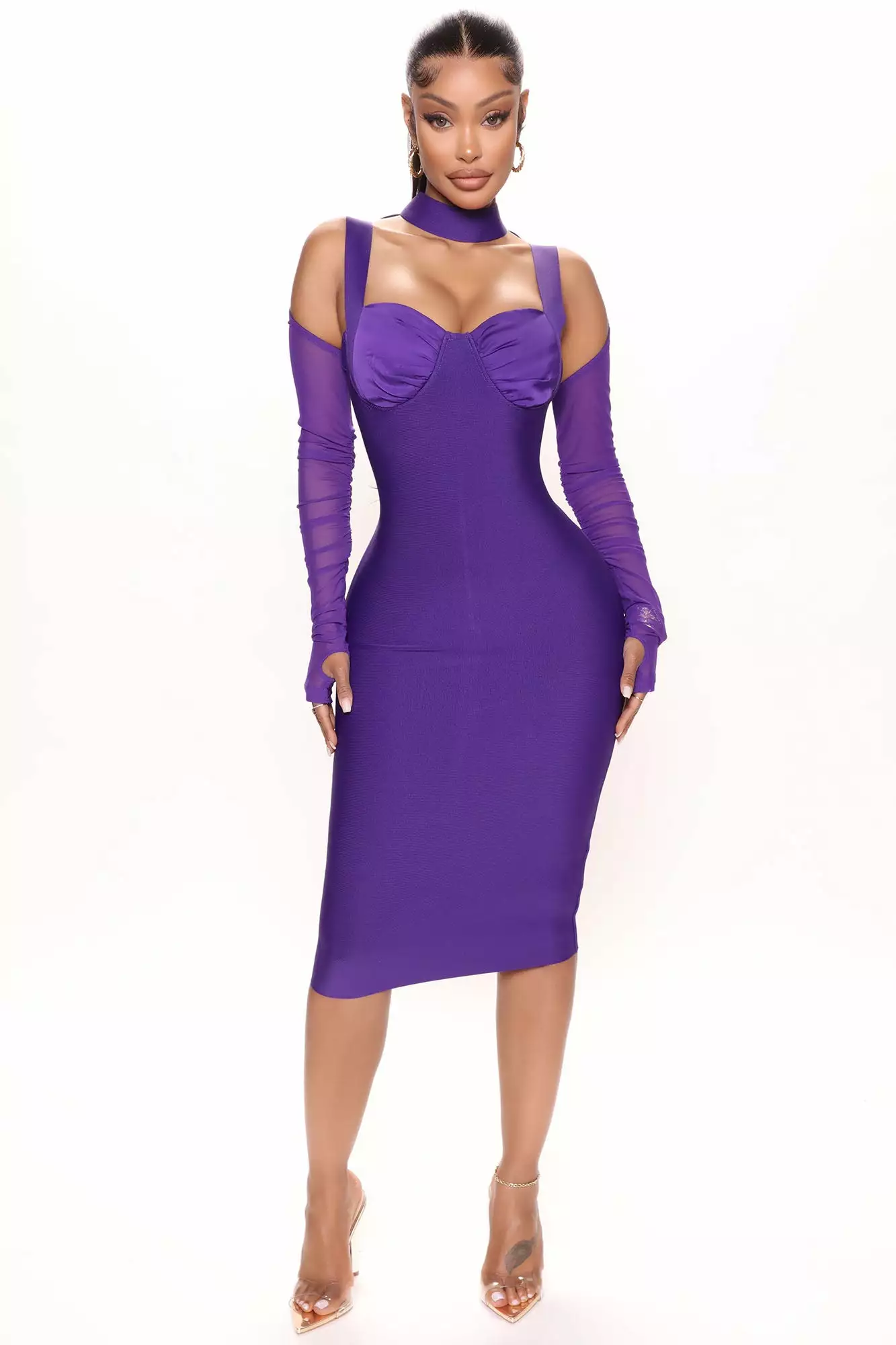 Fashion Nova Love Like This Bandage Midi Dress – Purple